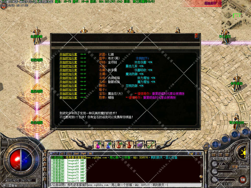 宝宝变异、鉴定、特效、经脉、连击、BUFF、元素、大极品、马牌、战鼓、宝玉、神技、技能强化、附魔、特戒、打孔、镶嵌、时装,等等。内容相当丰富。