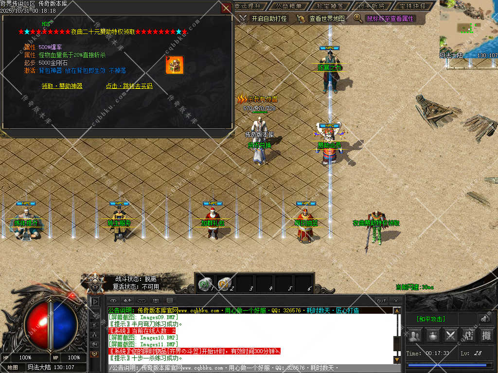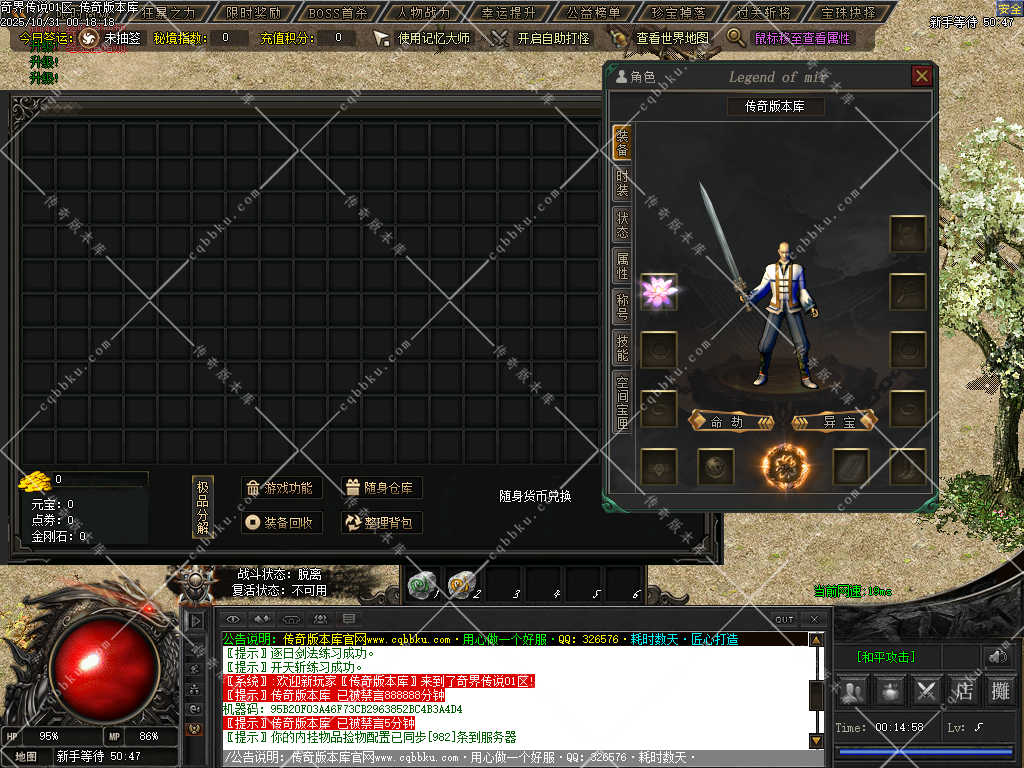 传奇版本库,传奇版本下载,传奇单机资源站,热门传奇版本库,热门传奇私服版本推荐-最全最新游戏版本下载基地 » 01-842独家精修奇界传说剧情专属神器攻速单职业版本-带假人-自动回收-自动拾取