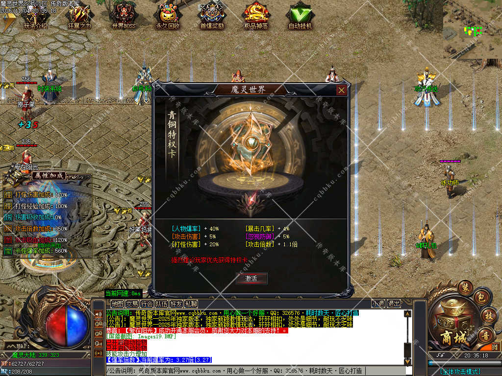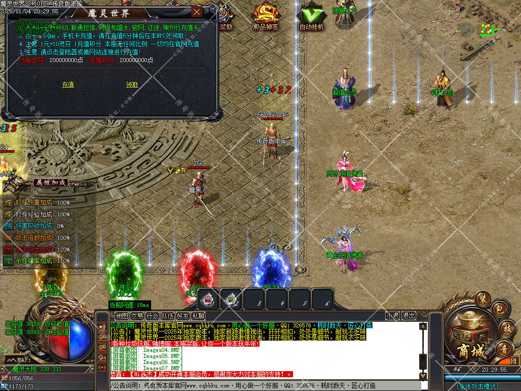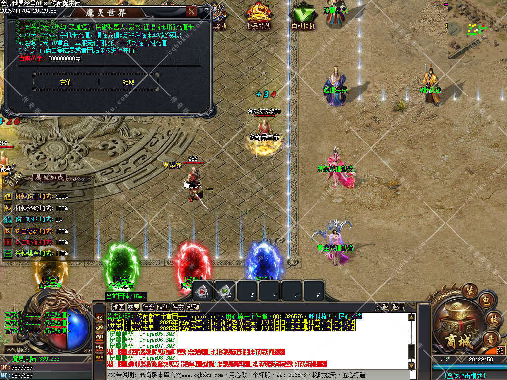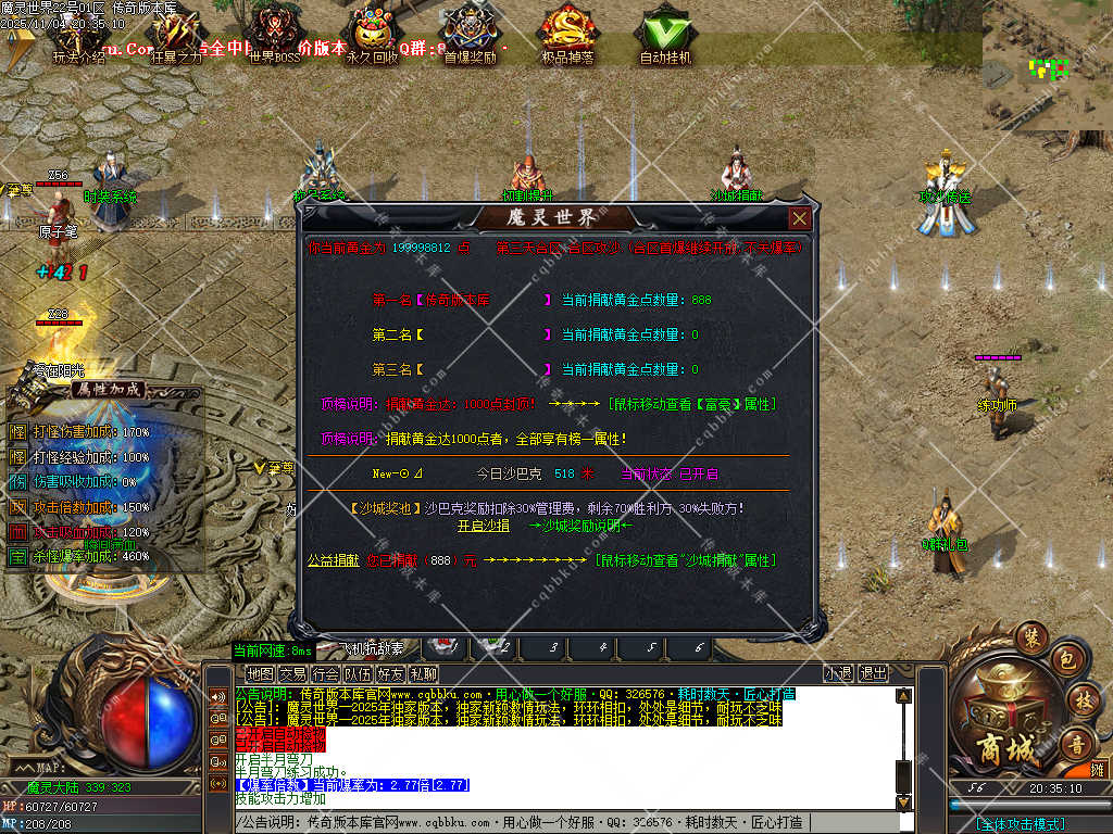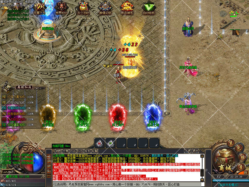 5.本服99%npc消费为元宝+金币+材料提升。货币材料非常好打。二大陆开始爆率极高。