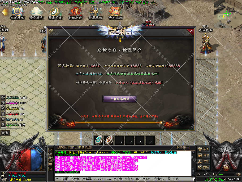 01-855独家蜀山剑仙沉默专属正版开区单职业传奇服务端-带假人-33大陆-装备强化-狂暴之城