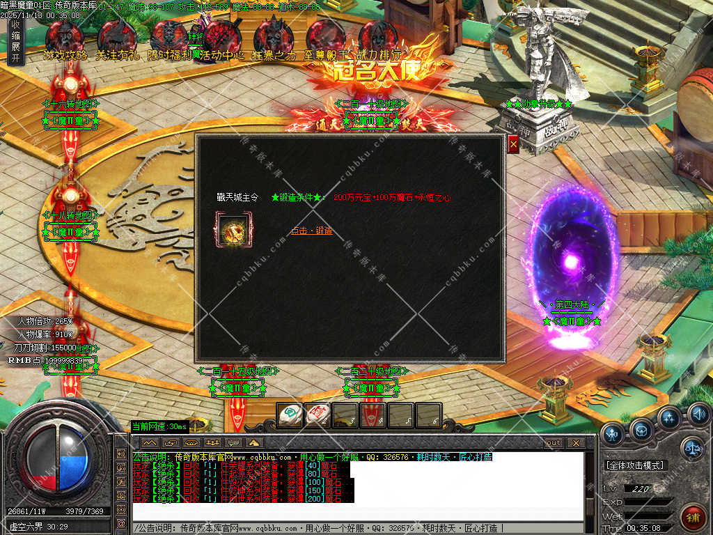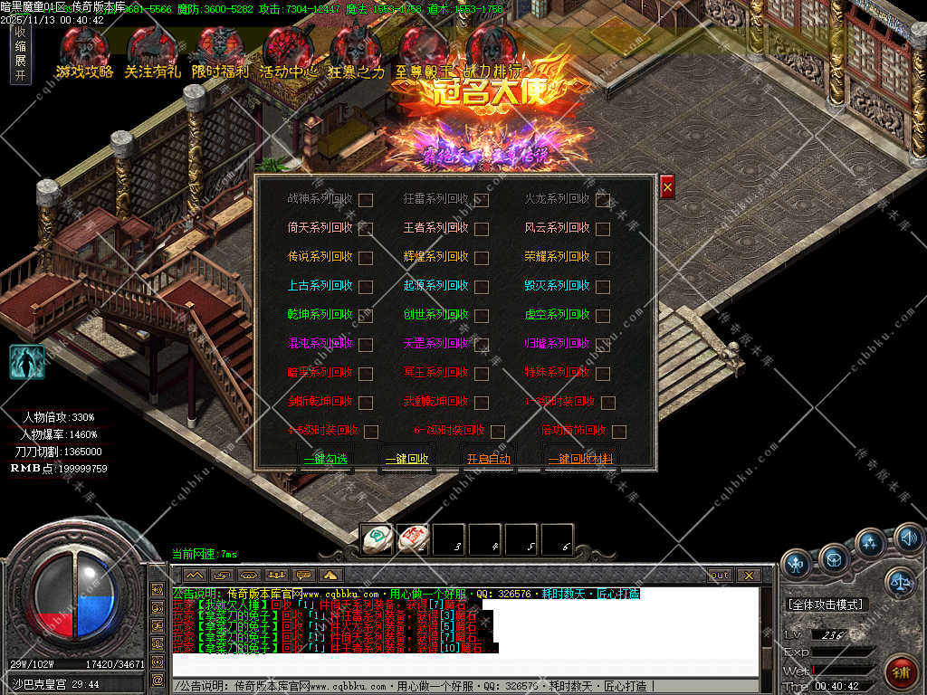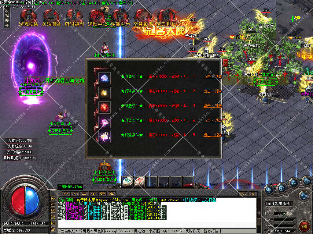 传奇版本库,传奇版本下载,传奇单机资源站,热门传奇版本库,热门传奇私服版本推荐-最全最新游戏版本下载基地 » 01-865代销暗黑魔童无限刀单职业传奇服务端-ESP插件-带假人-技能升级-狂暴之力