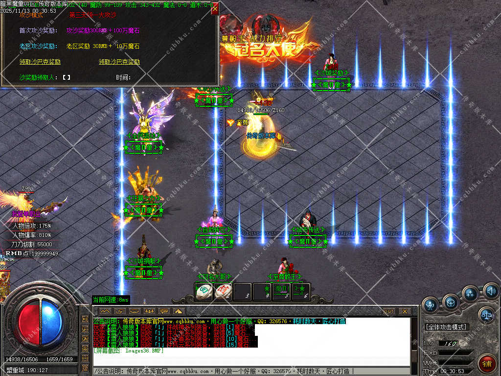 沙城捐献,狂暴之力,赠送各种神技以及道具奖励,PK打宝,事半功倍
