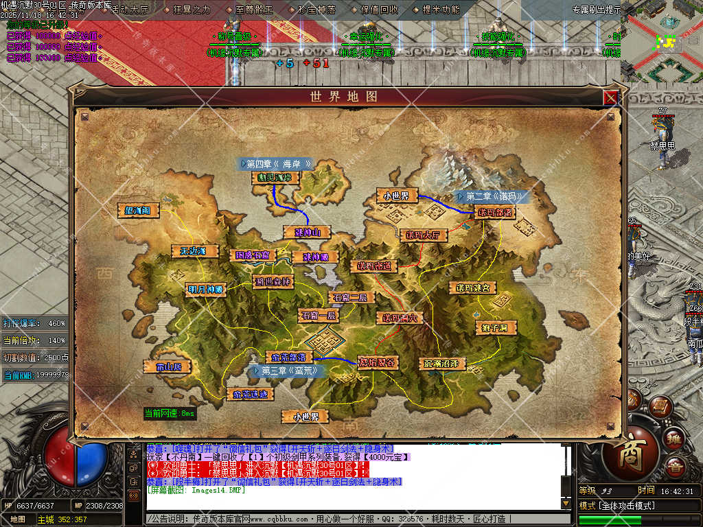 9.所有世界BOSS.专属怪物.被击杀后.有概率复活在小世界地图.所有玩家比强地图..