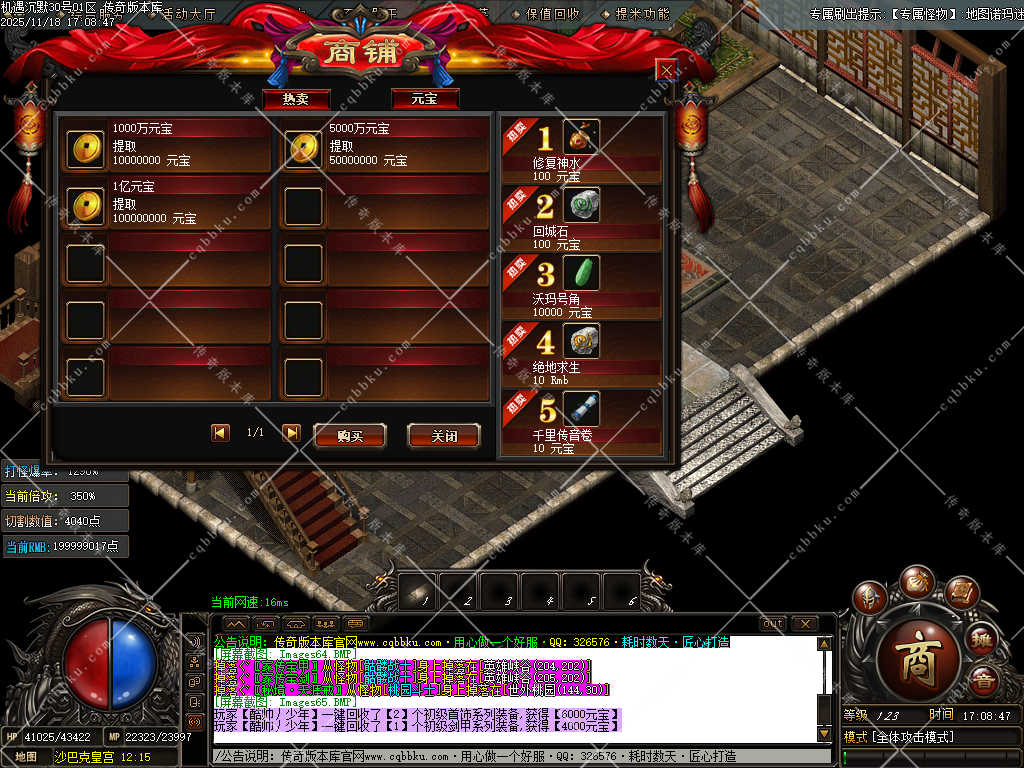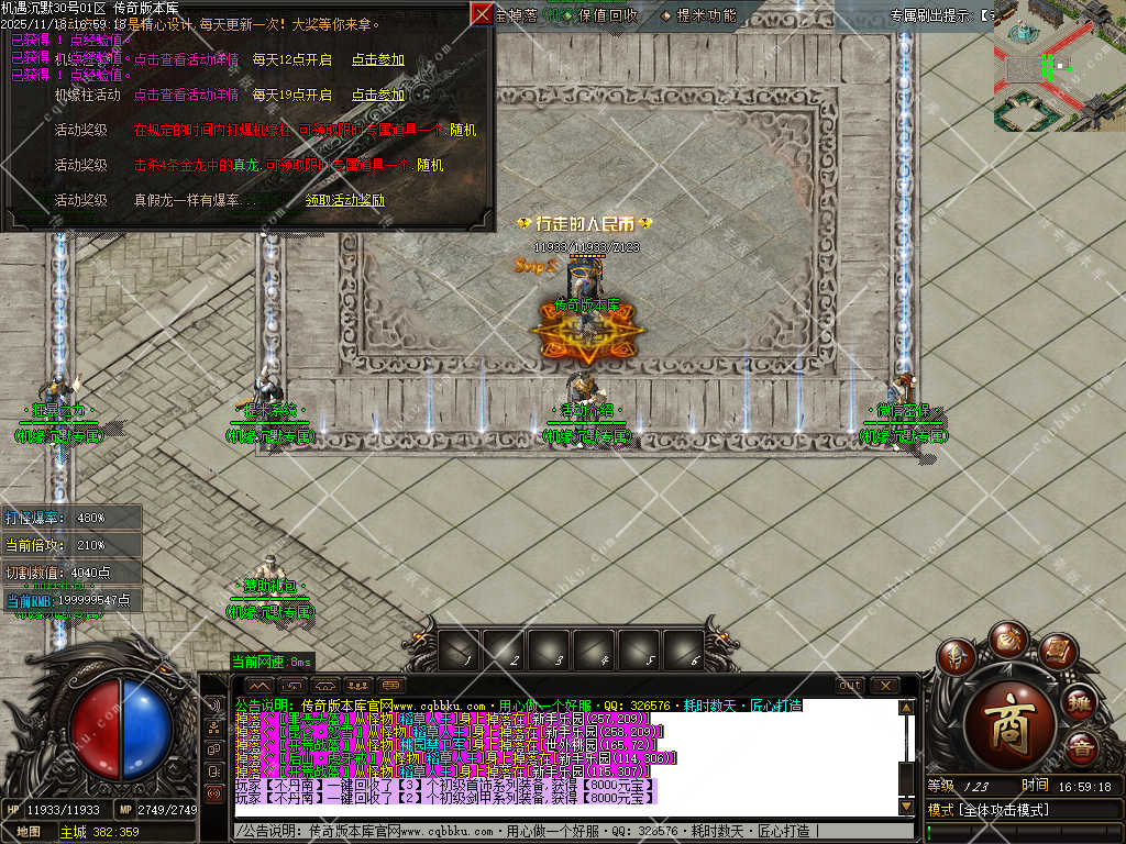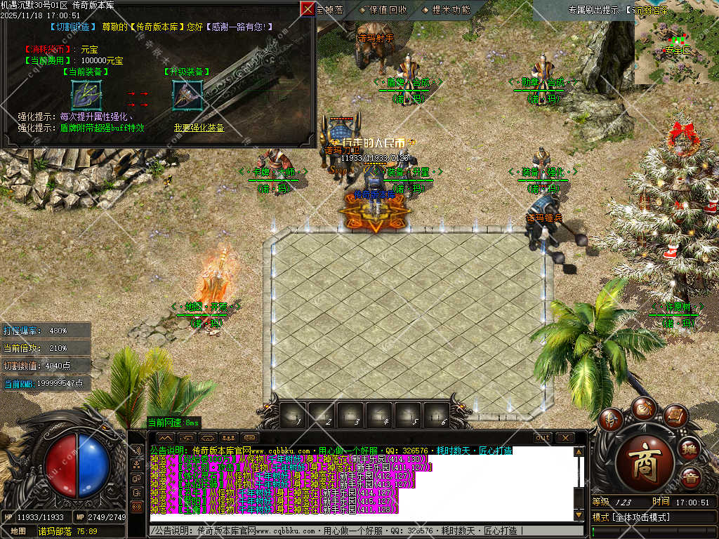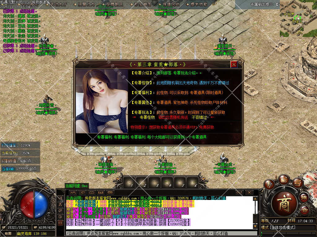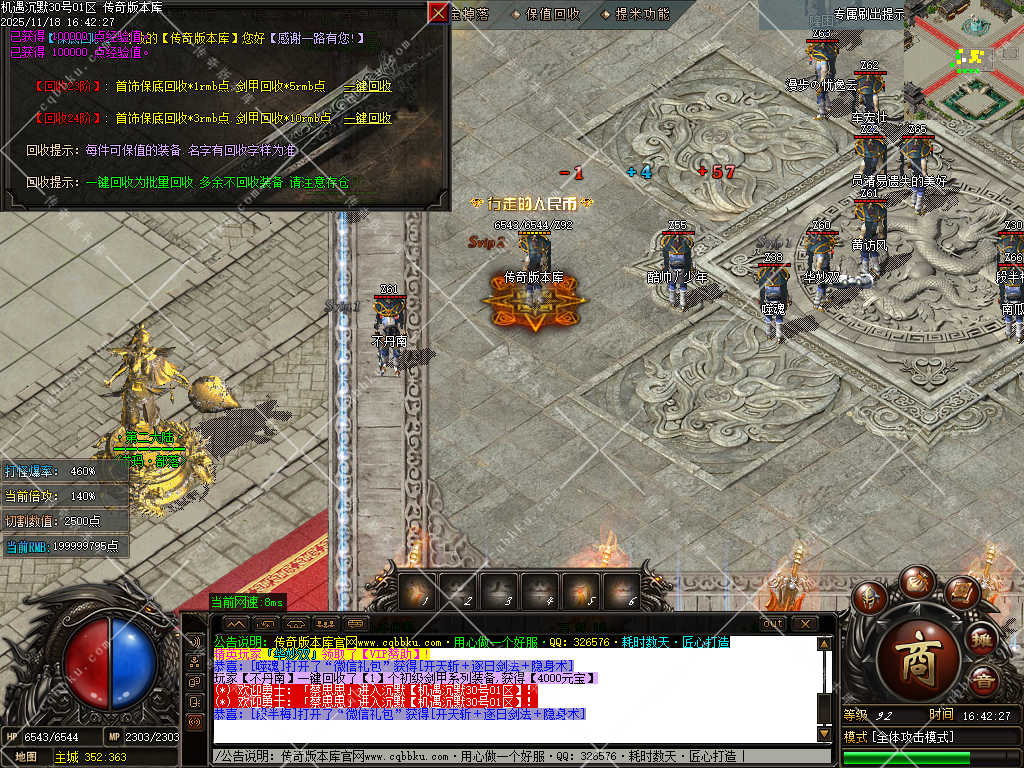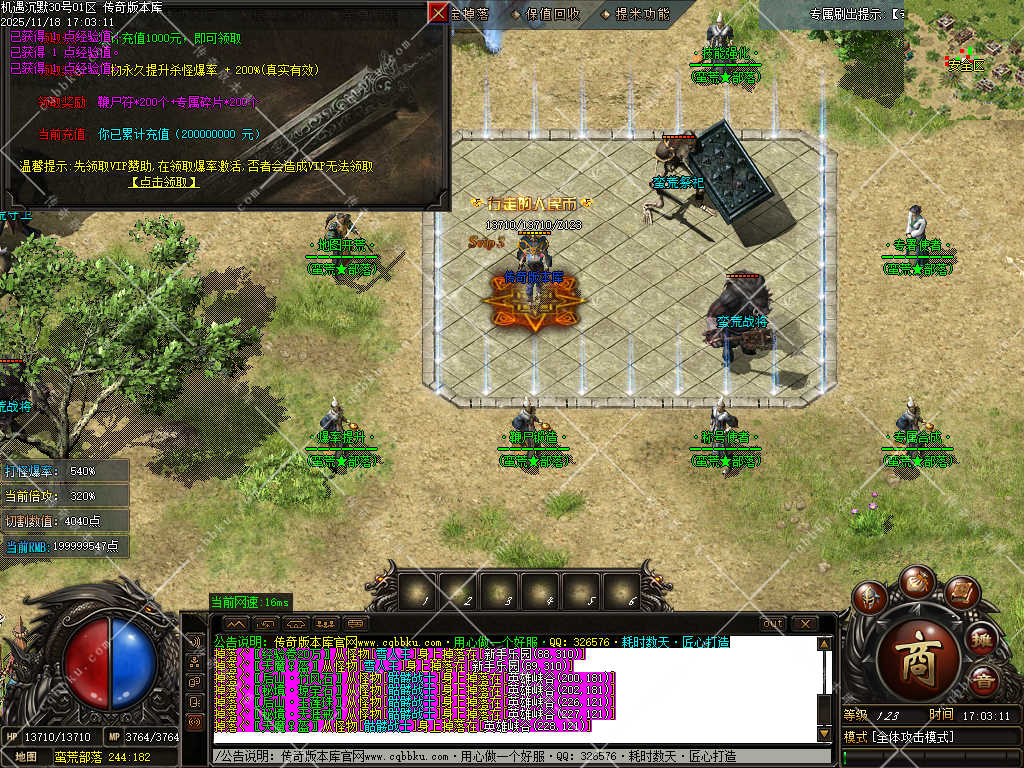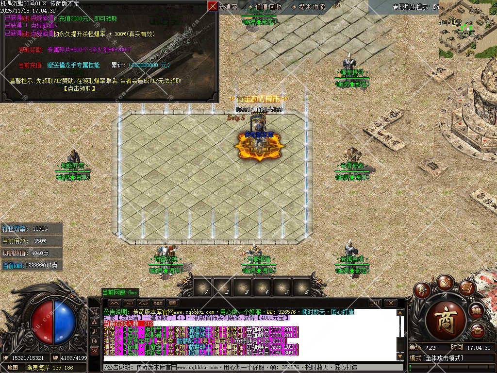 4.神豪玩家充值1000元.可使用专属直传功能.哪里刷怪飞哪里.更有超级礼包.赠送攻速.百分币切割专属道具...