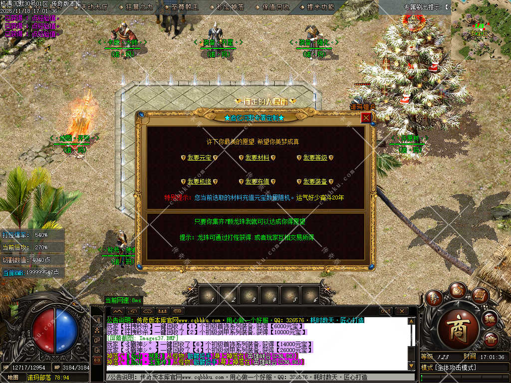 5.许愿树介绍.白票玩家通过打怪获得七龙珠集齐后.可以抽取会员.装备.等级+N....