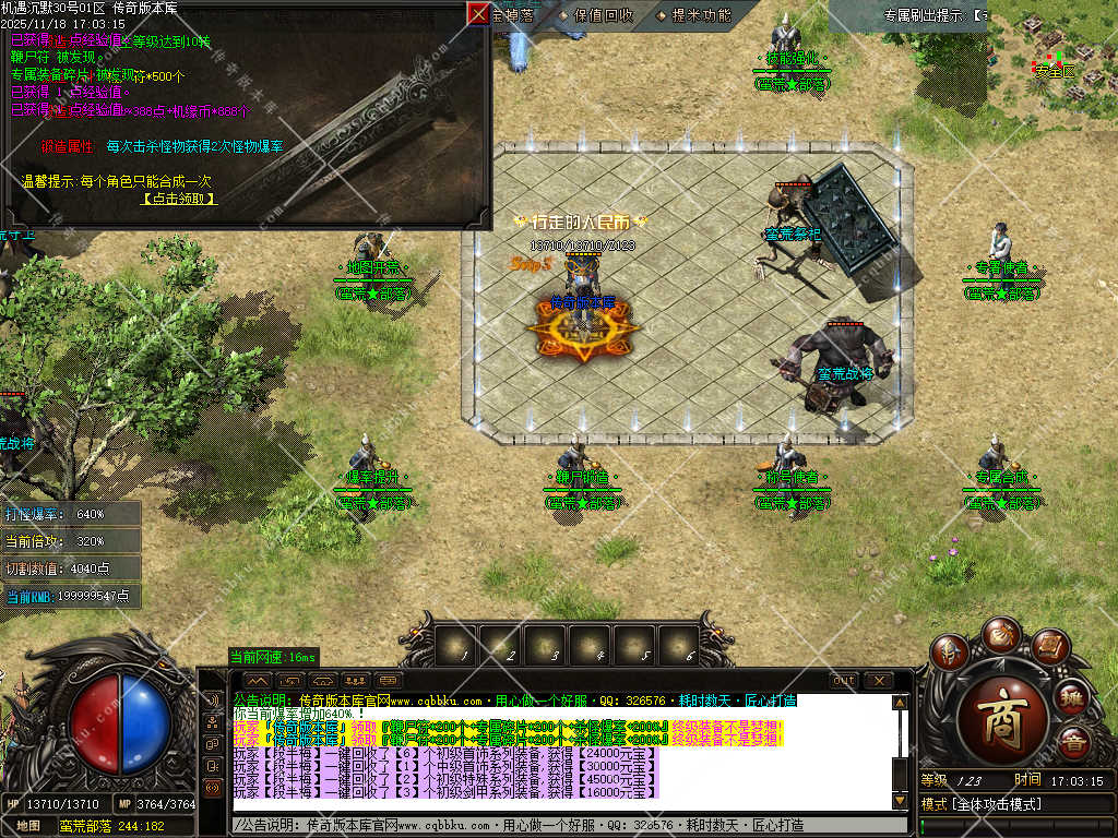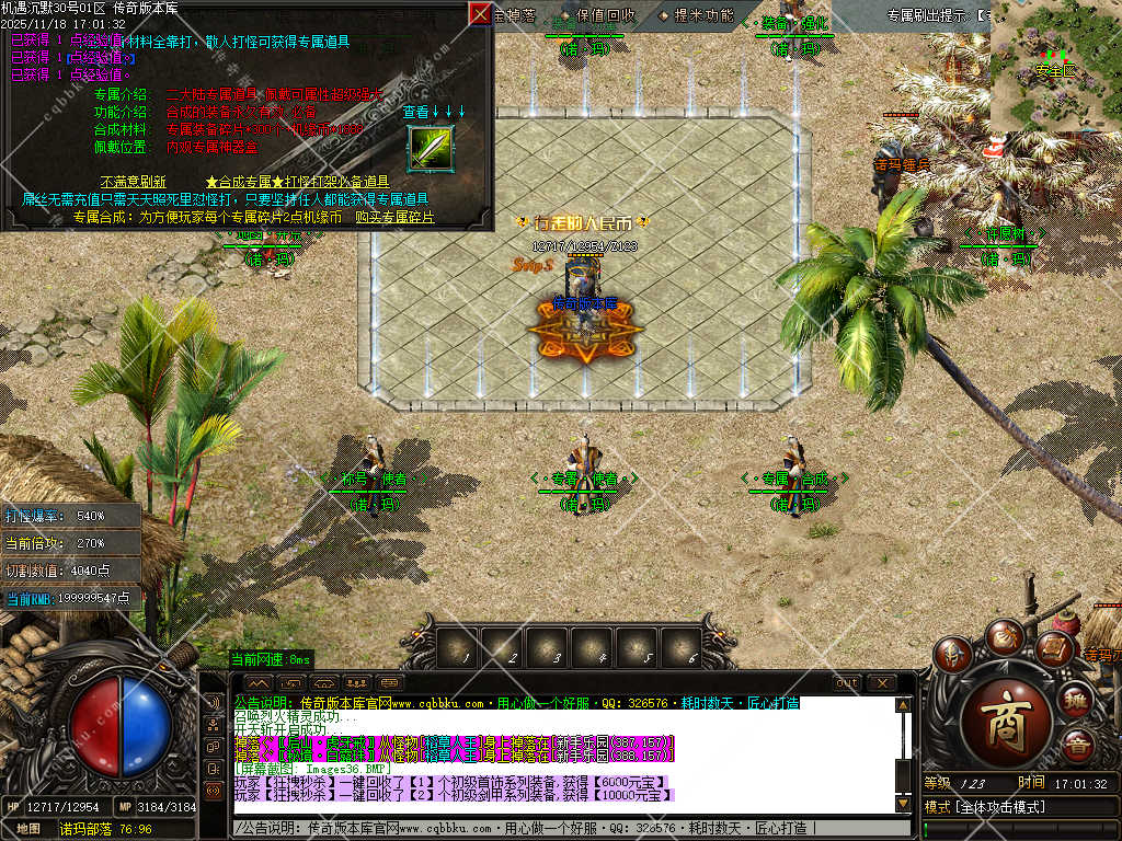 1.新区上线+100%爆率.所有玩家通通可以体验....