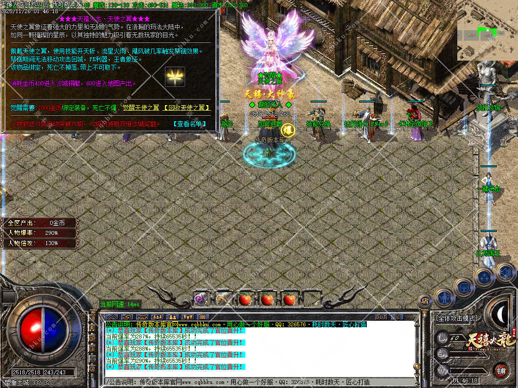 此版本上线直接45级 直接去天禧冰城地图,从冰城开始,成品激情打金,4小时高爆版本,打完爆率就新区