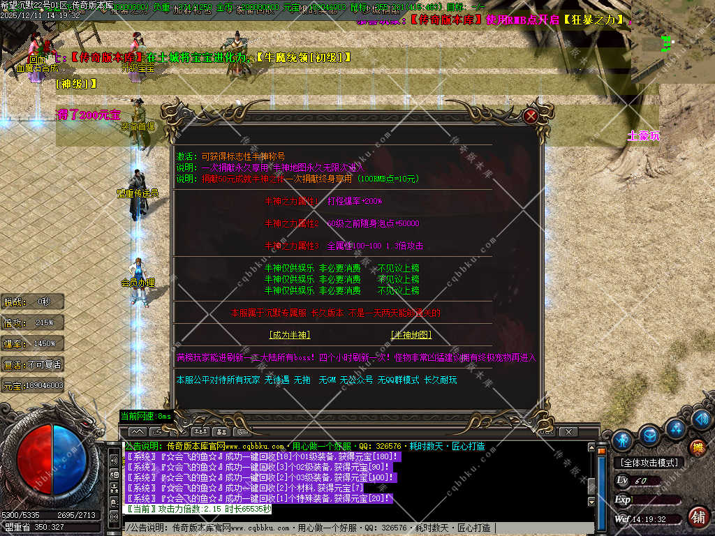 2:本服充值只能购买会员,狂暴。比例:1:10。