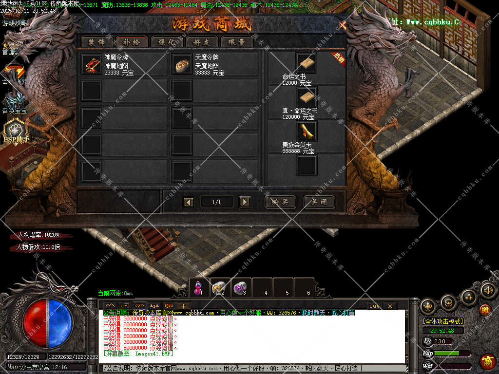 版本特色:所有地图免费进入;上干件神器,全靠BOSS爆出!