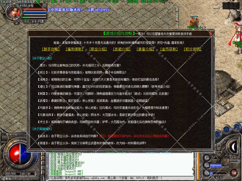 传奇版本库,传奇版本下载,传奇单机资源站,热门传奇版本库,热门传奇私服版本推荐-最全最新游戏版本下载基地 » 01-949独家天命起源四职业英雄合击暗黑传奇服务端-会员BUFF-庄园-自动回收