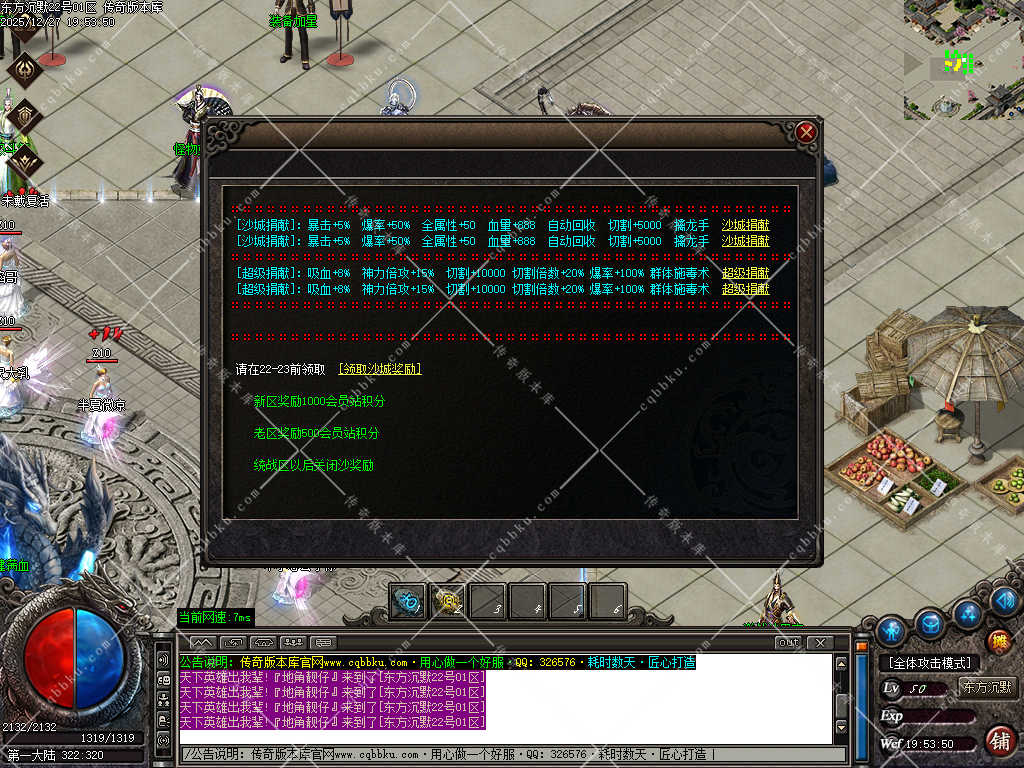 【攻沙奖励】:每次合区都有大米奖励越合越激情人气保障