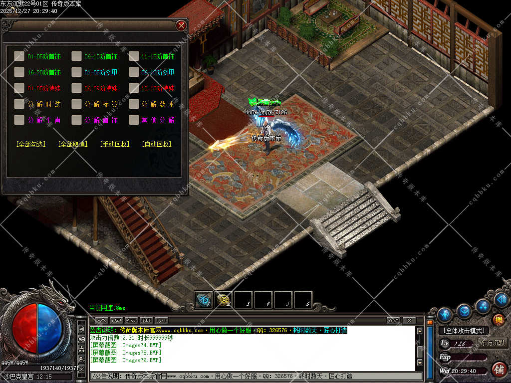 传奇版本库,传奇版本下载,传奇单机资源站,热门传奇版本库,热门传奇私服版本推荐-最全最新游戏版本下载基地 » 01-960独家东方沉默专属神器攻速单职业服务端-带假人-ESP插件-自动回收