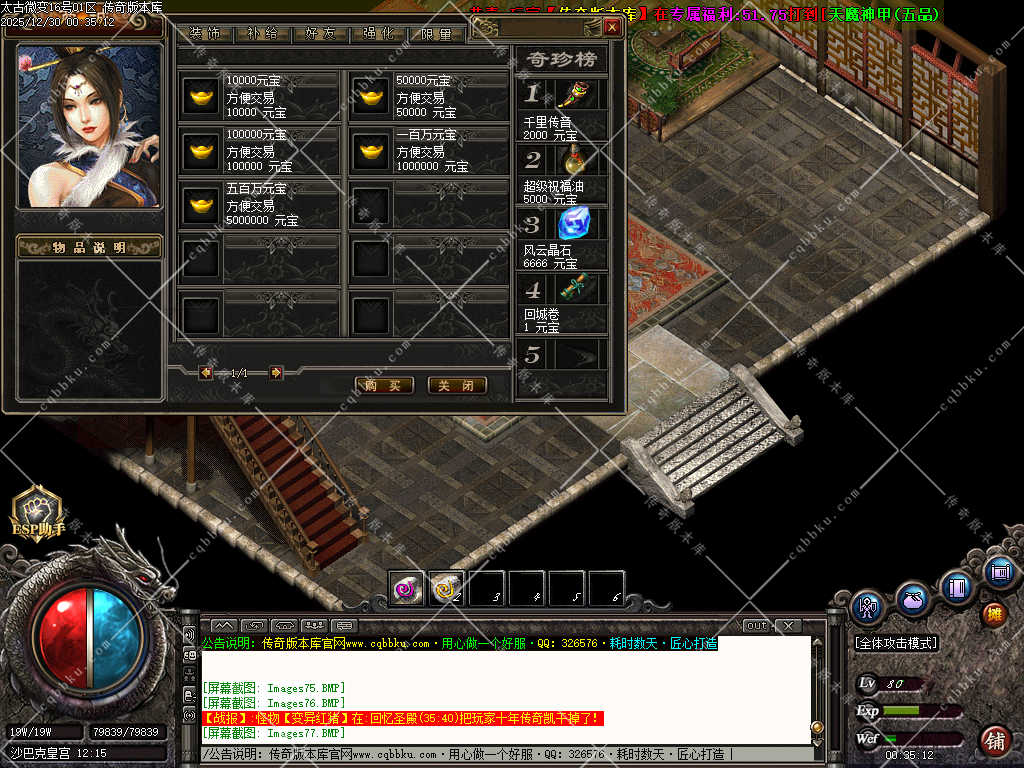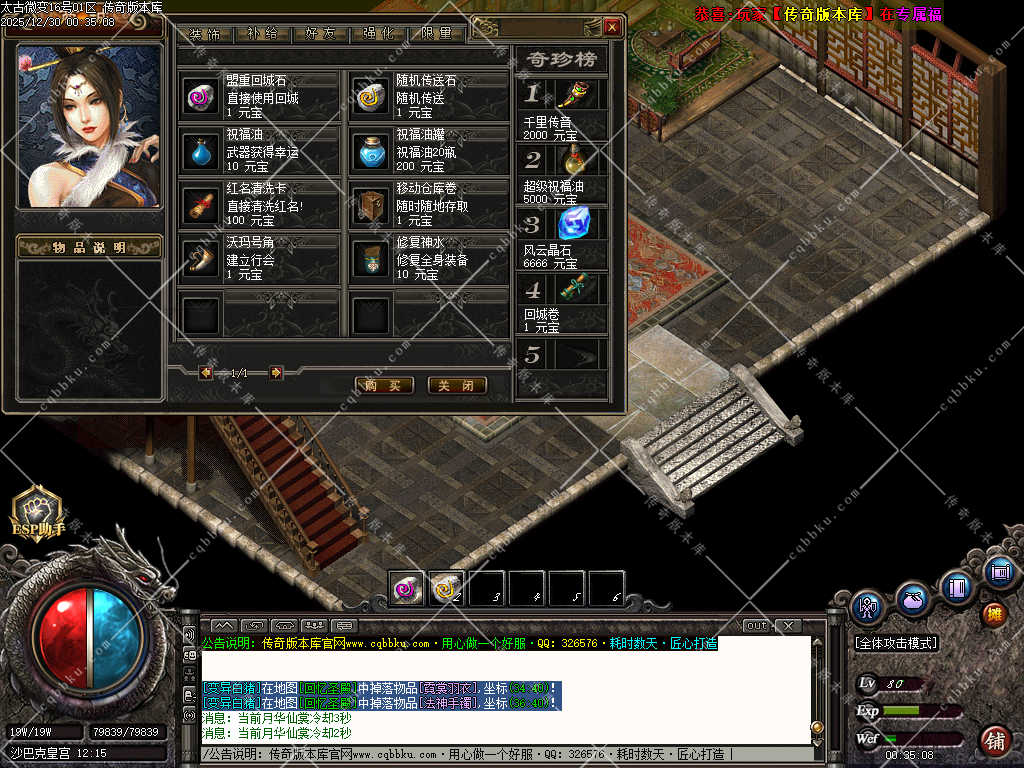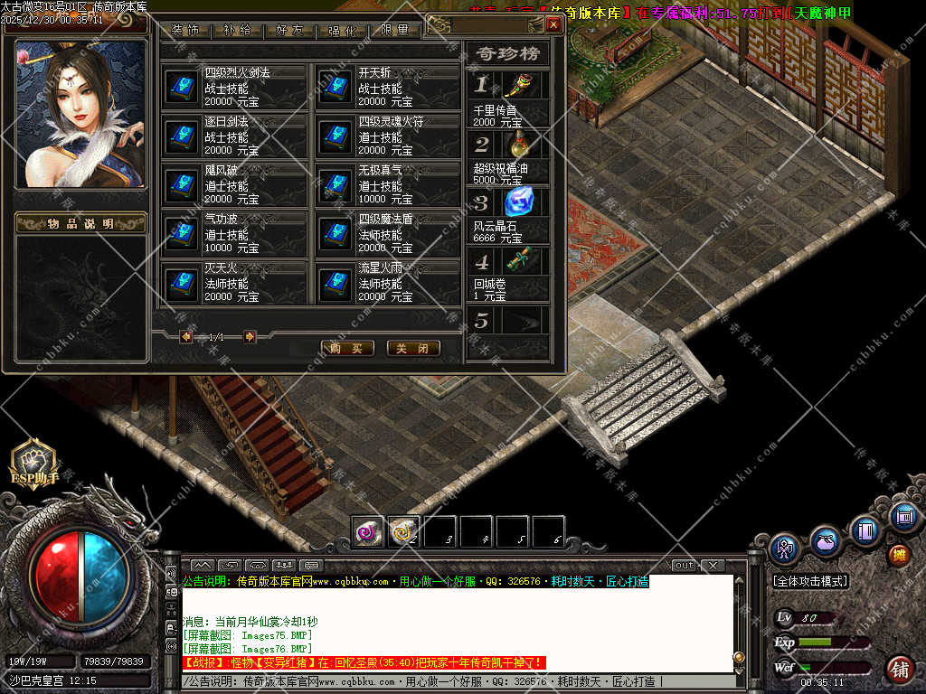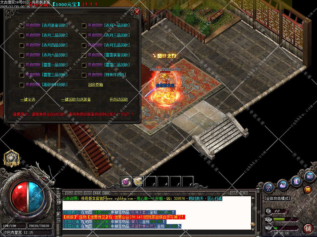 传奇版本库,传奇版本下载,传奇单机资源站,热门传奇版本库,热门传奇私服版本推荐-最全最新游戏版本下载基地 » 01-966独家1.76太古微变元素攻速极品三职业版本-智能假人-ESP插件-自动回收-五大陆