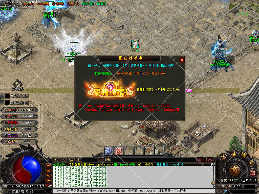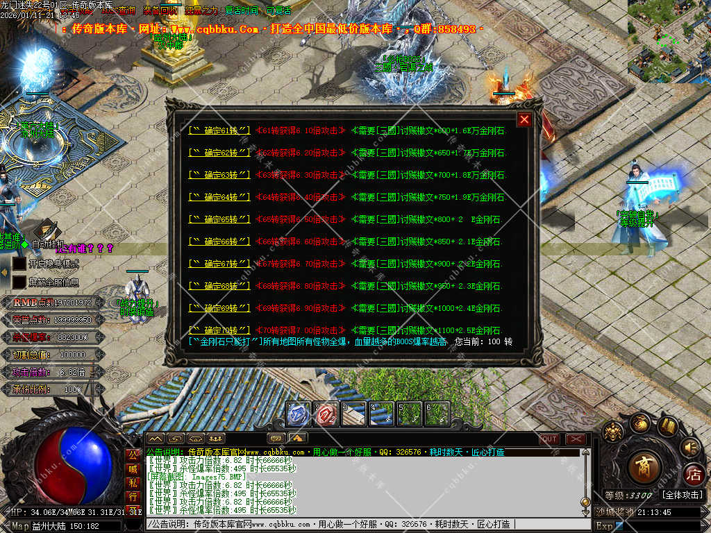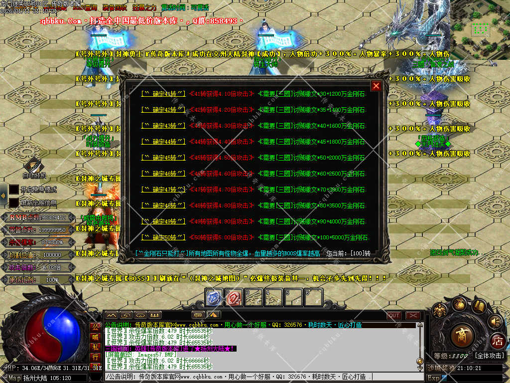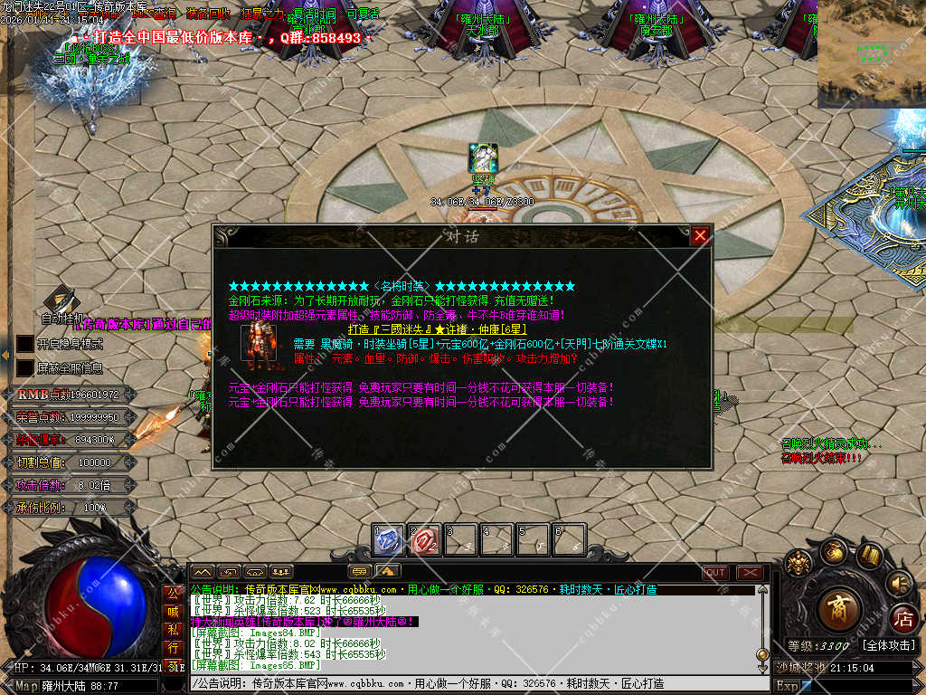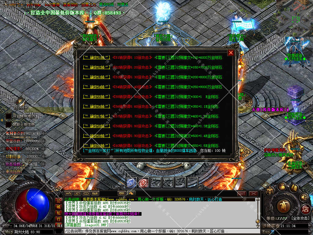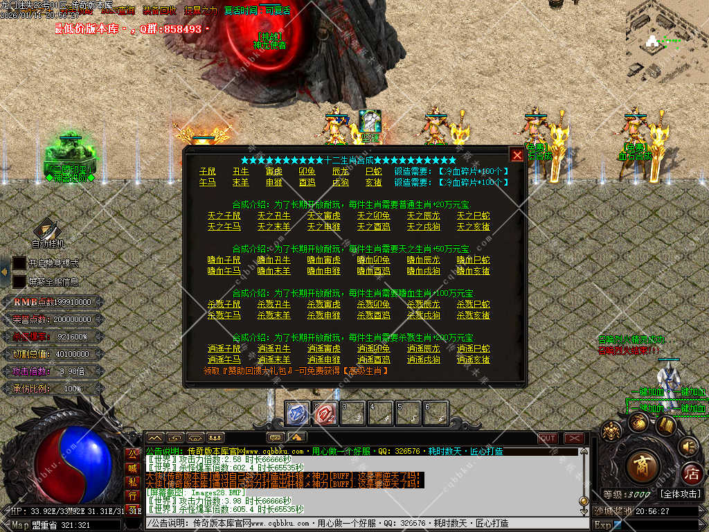 散人线路1:上线输入QQ群礼包码领取初级特殊!!!散人线路2:上线有赠送元宝金刚石盟重左上角特殊合成!!【本服元宝金刚石狂暴活动怪爆100亿以上】!