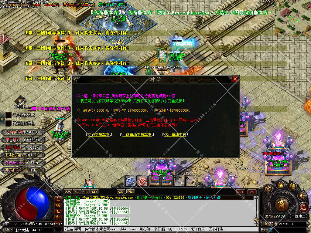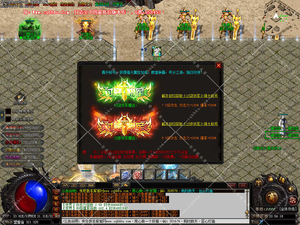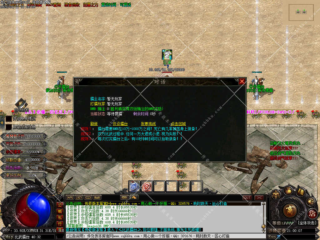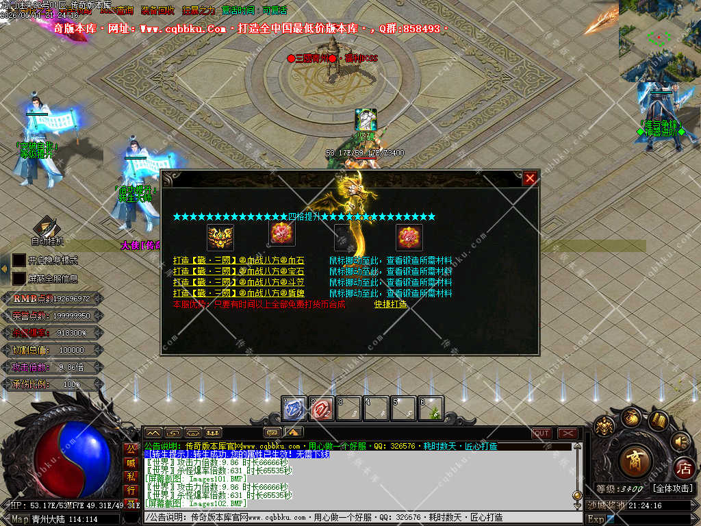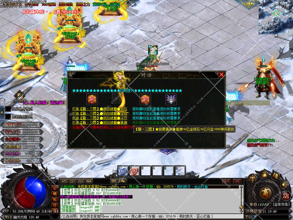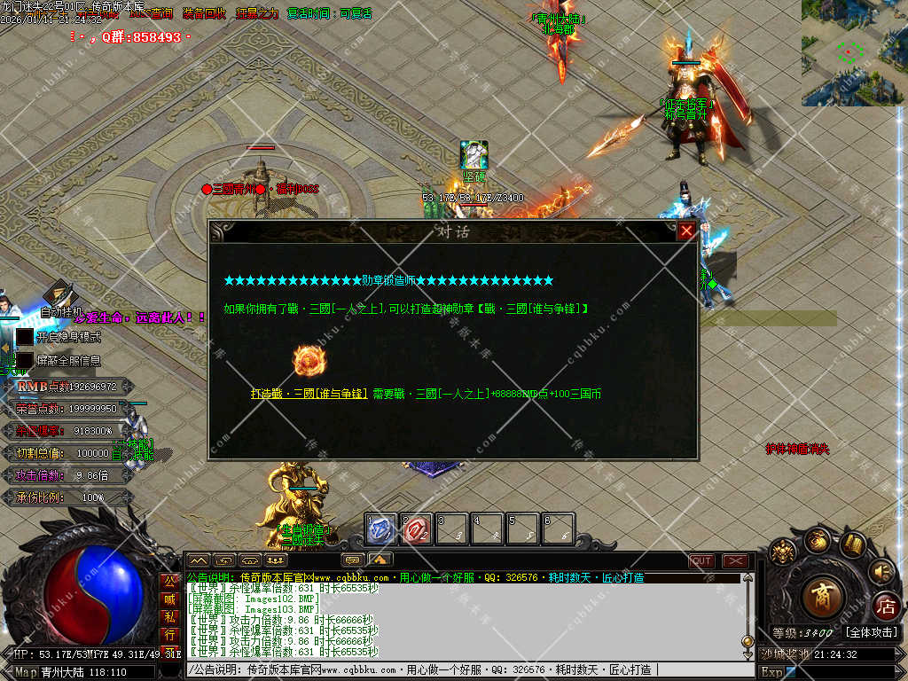散人线路1:上线输入QQ群礼包码领取初级特殊!!!散人线路2:上线有赠送元宝金刚石盟重左上角特殊合成!!【本服元宝金刚石狂暴活动怪爆100亿以上】!
