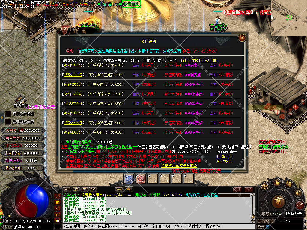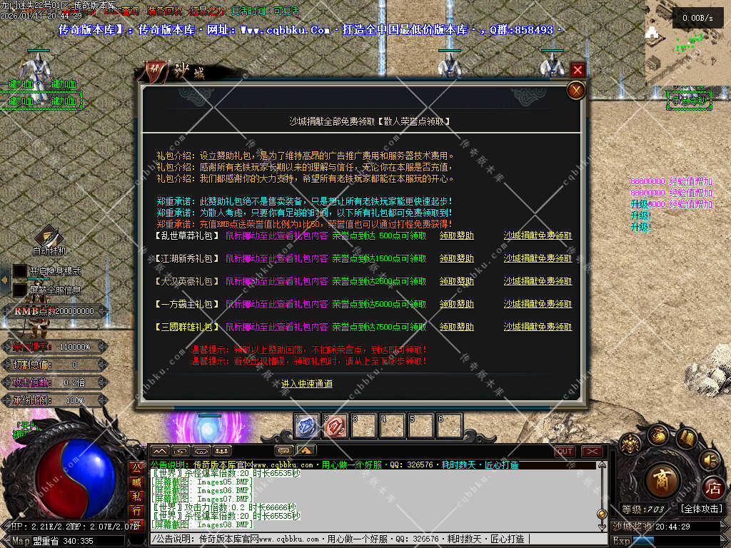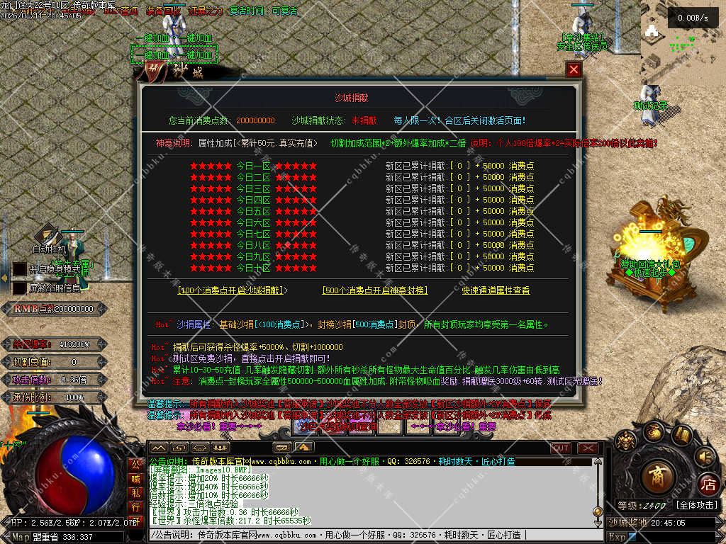 增加捐献系统10元领取+原赞助50改为免费领取【公益捐献后可免费领取】赠送3000级+60转=【纳入沙城奖池】