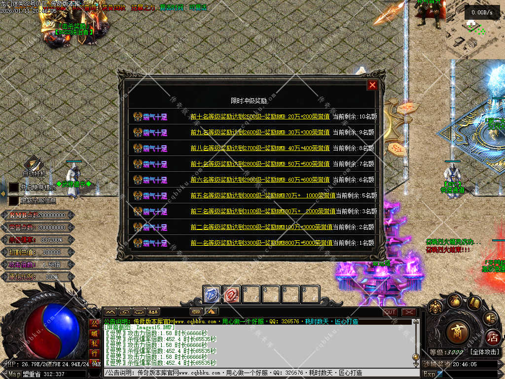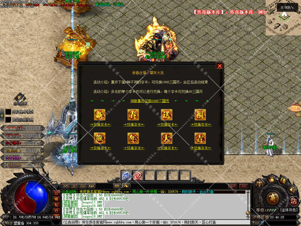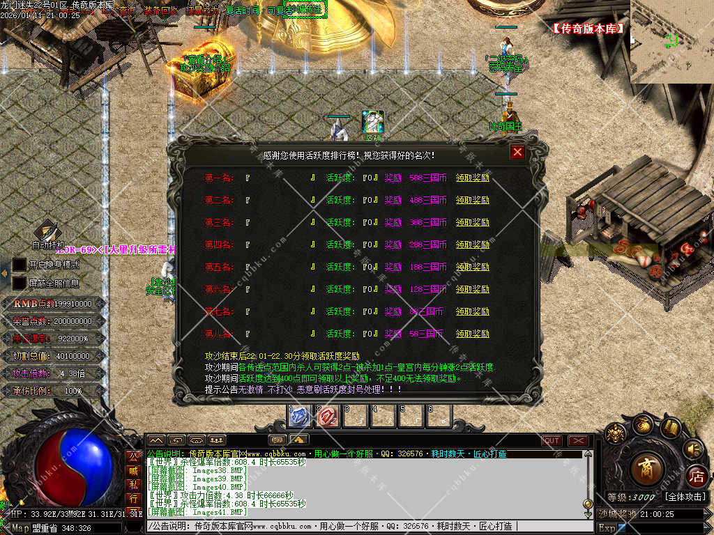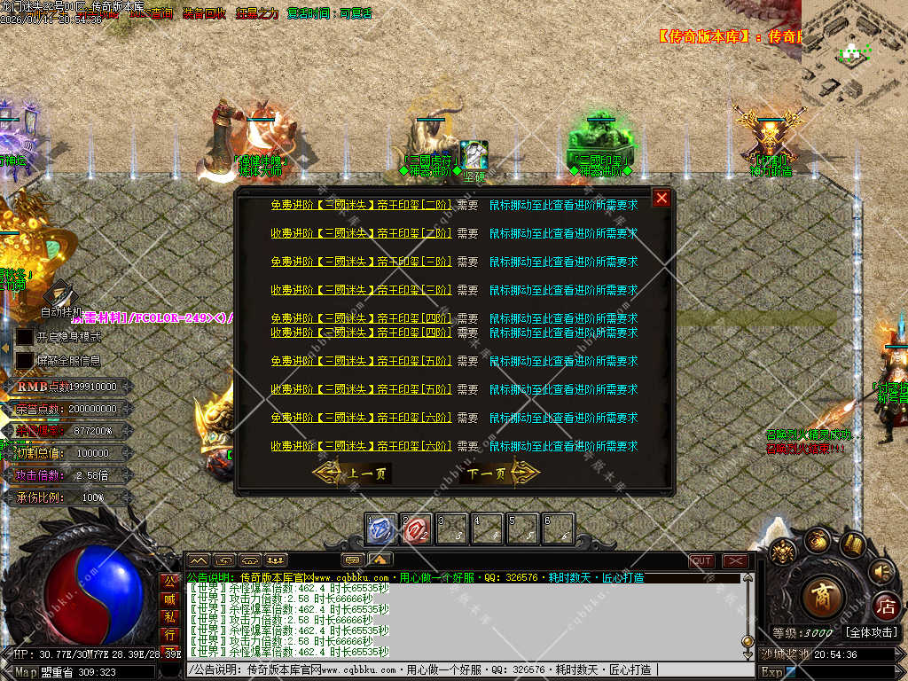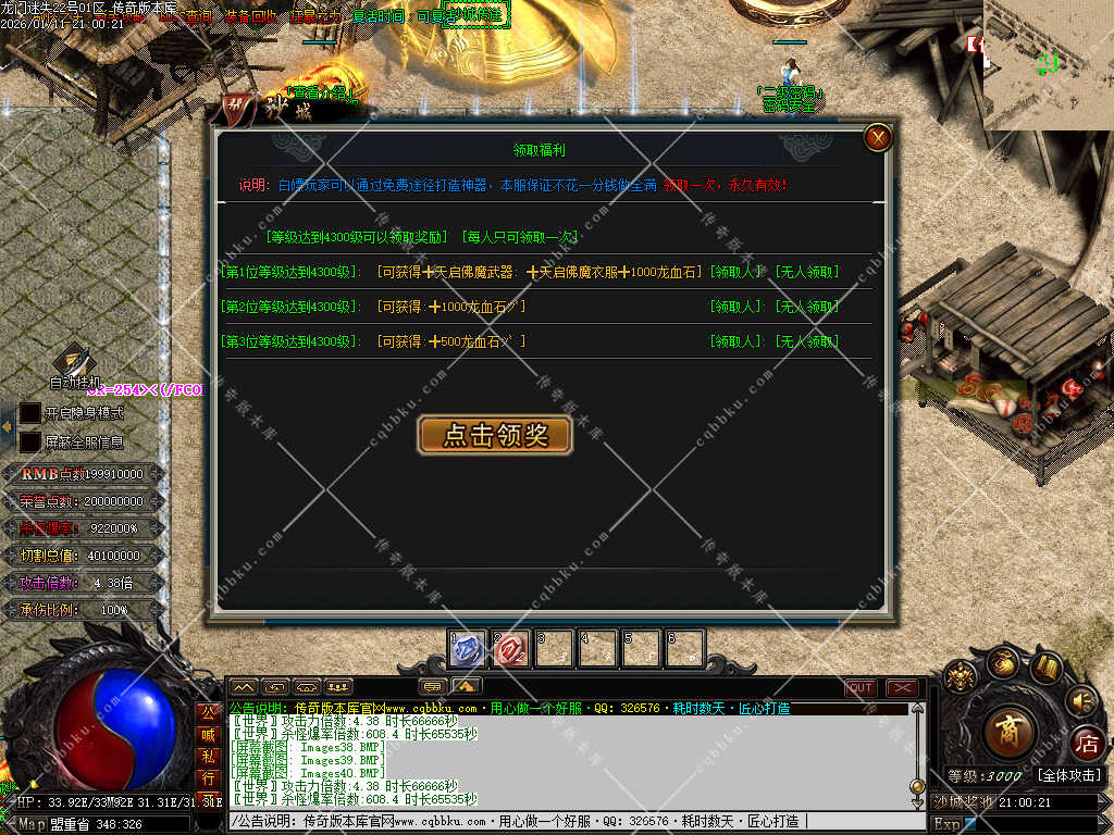 更新限时奖励具体盟重NPC查看增加NPC快速通道 可以占卜爆率以及倍功