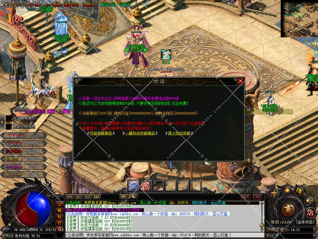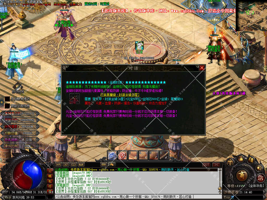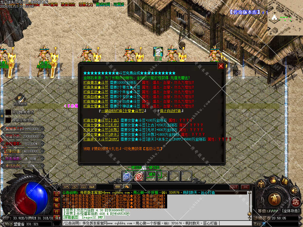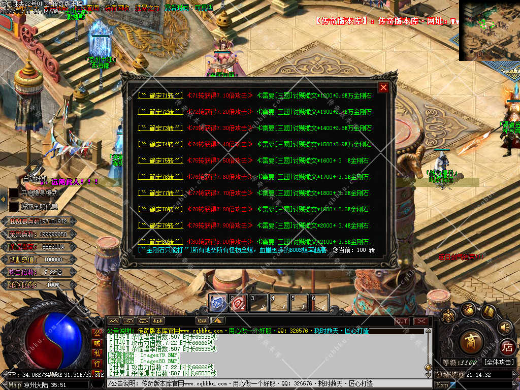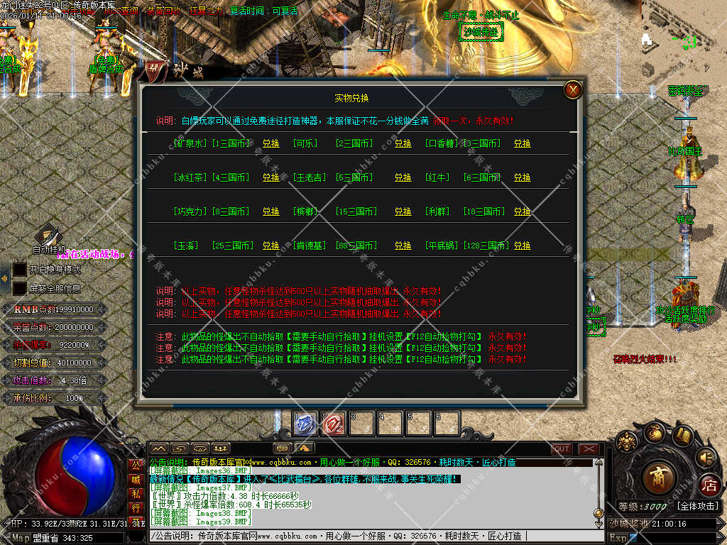 更新限时奖励具体盟重NPC查看增加NPC快速通道 可以占卜爆率以及倍功