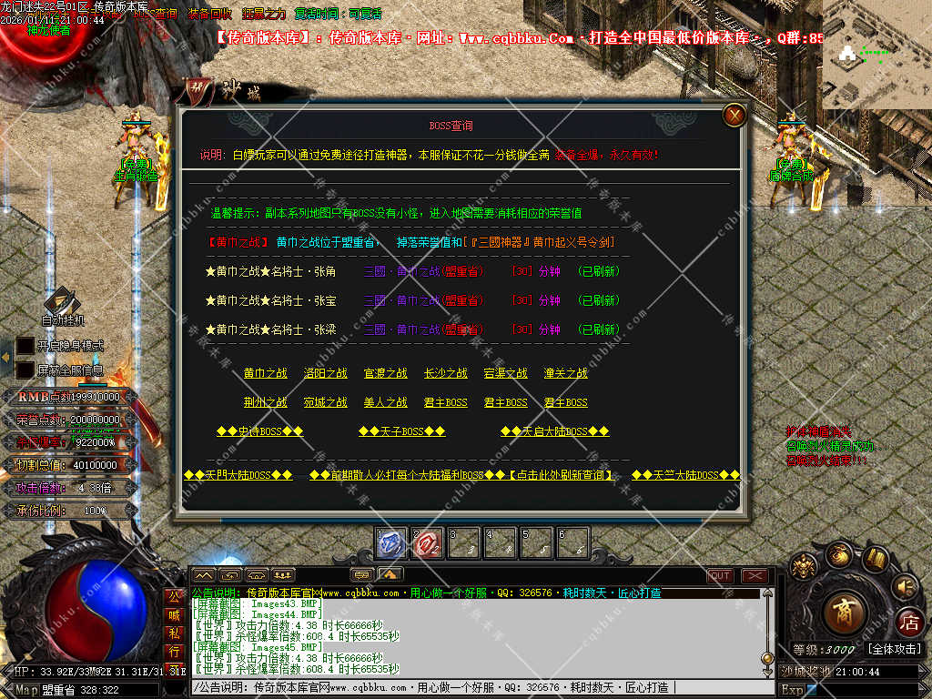 增加BOSS福利系统 每个大陆每2小时刷新福利BOSS必爆【1-10消费点】【刷新状态】BOSS查询