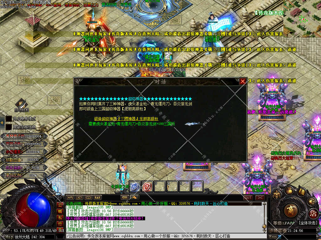 传奇版本库,传奇版本下载,传奇单机资源站,热门传奇版本库,热门传奇私服版本推荐-最全最新游戏版本下载基地 » 01-976独家新龙门迷失无限刀亿兆变态属性神器单职业端-智能假人-自动回收-34大陆