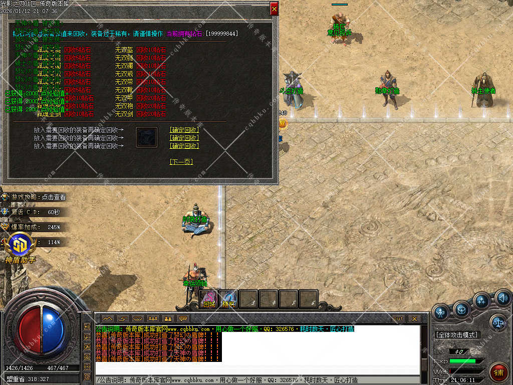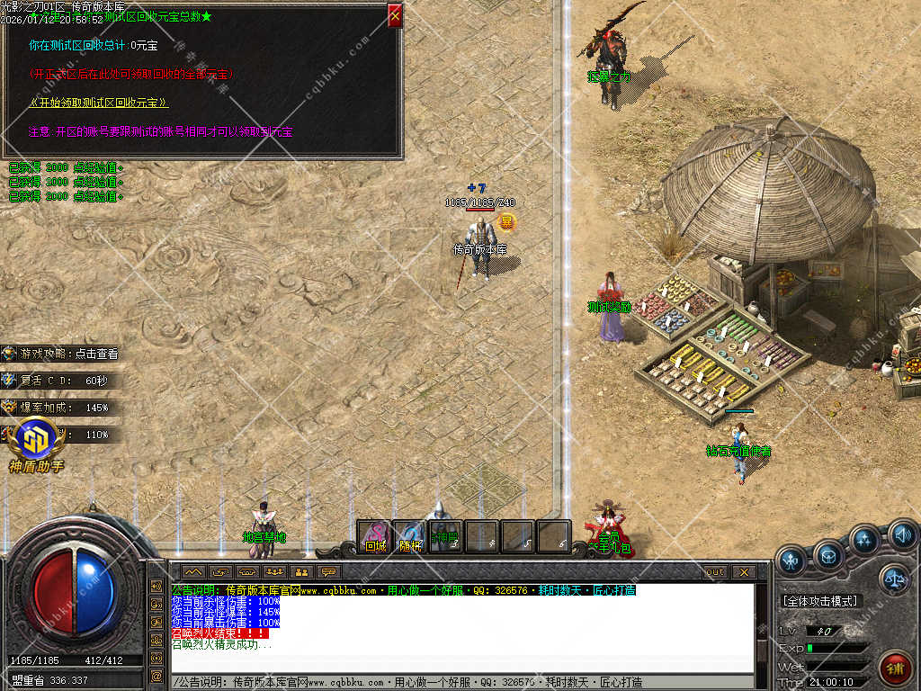 8.测试区开启期间,通过打装备回收的元宝,等到正式开区,会直接100%返还,测试区行动起来吧!!