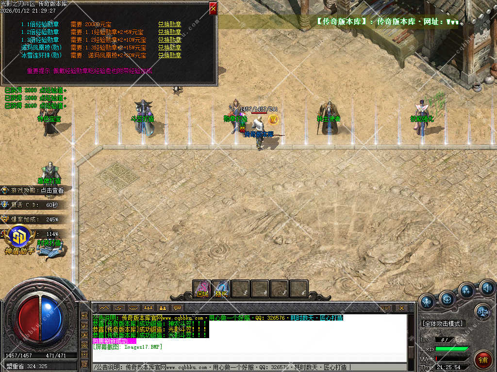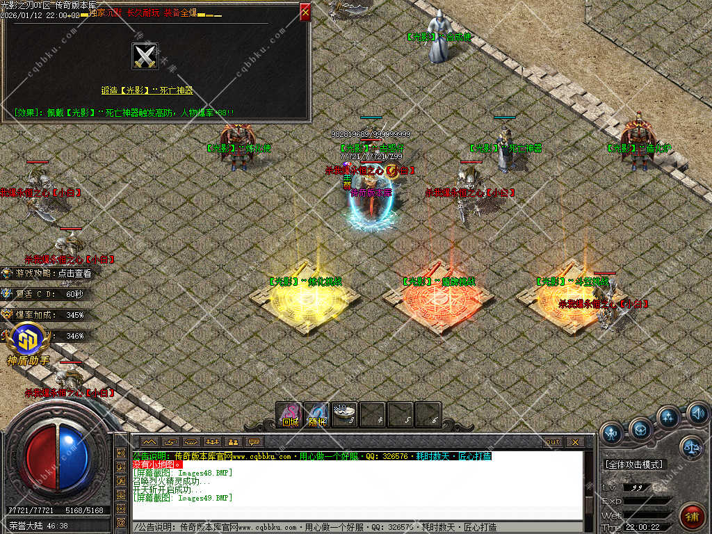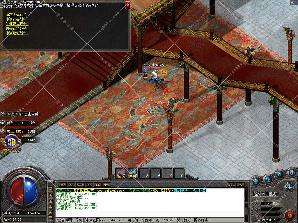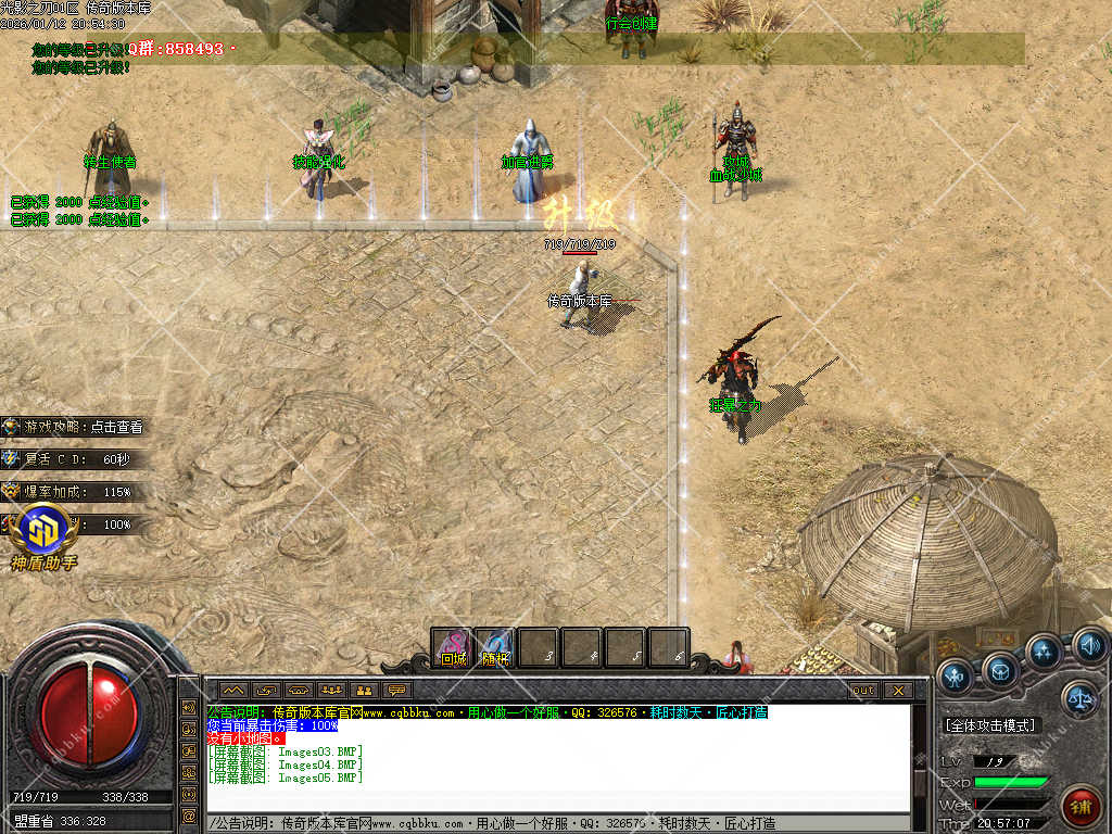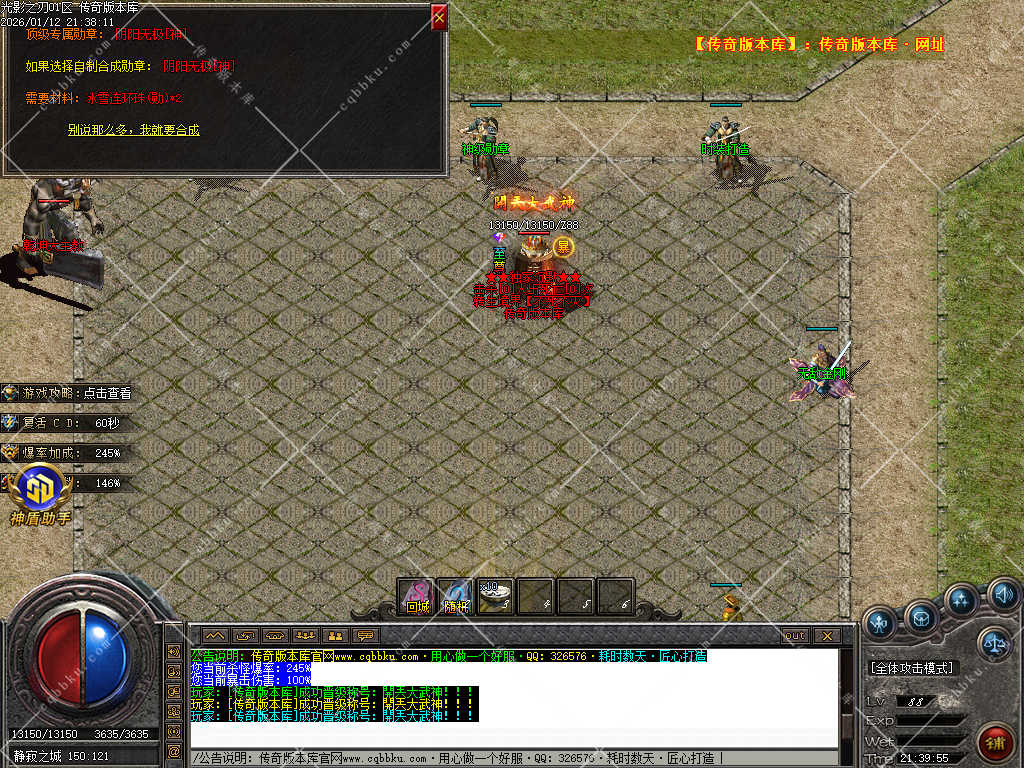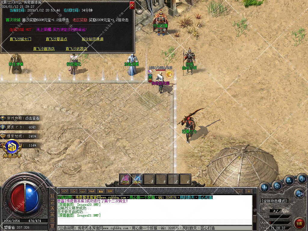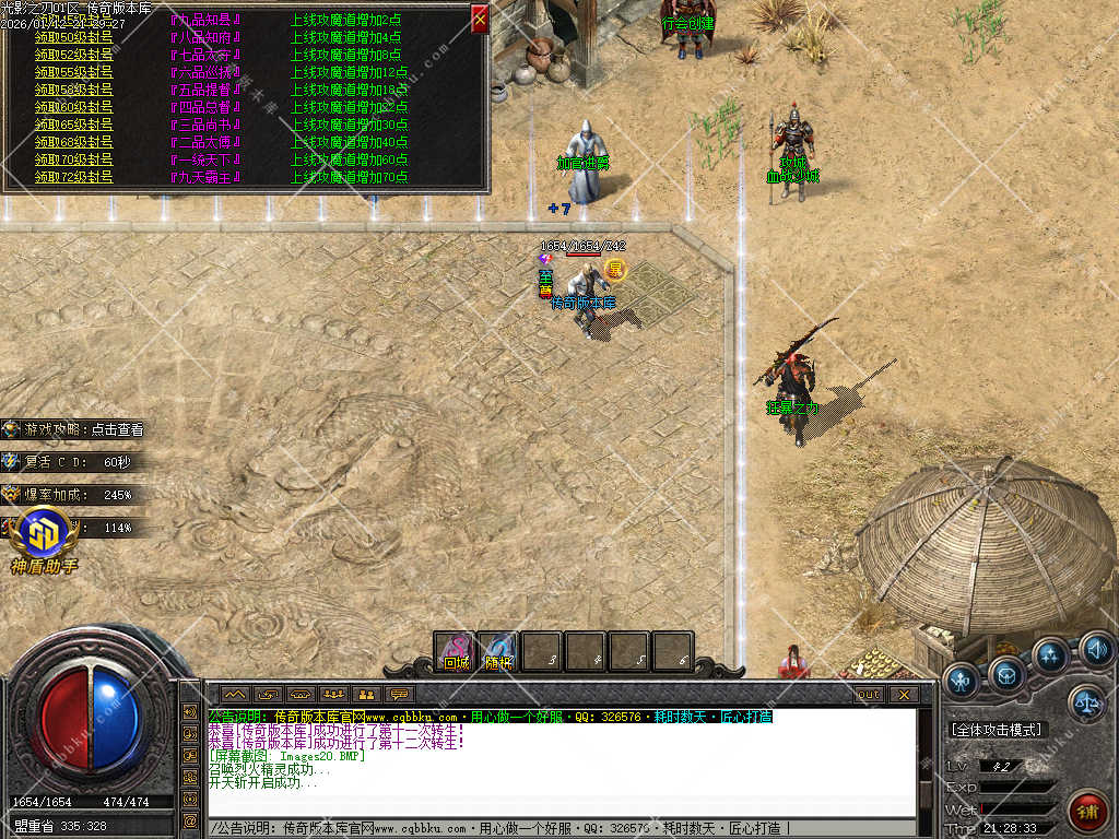 9.攻城系统:开区第三天,系统自动申请集体攻城,首届沙巴克奖励为:500万元宝+1.2倍攻击