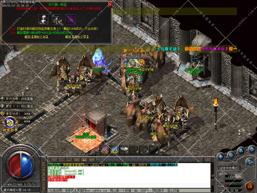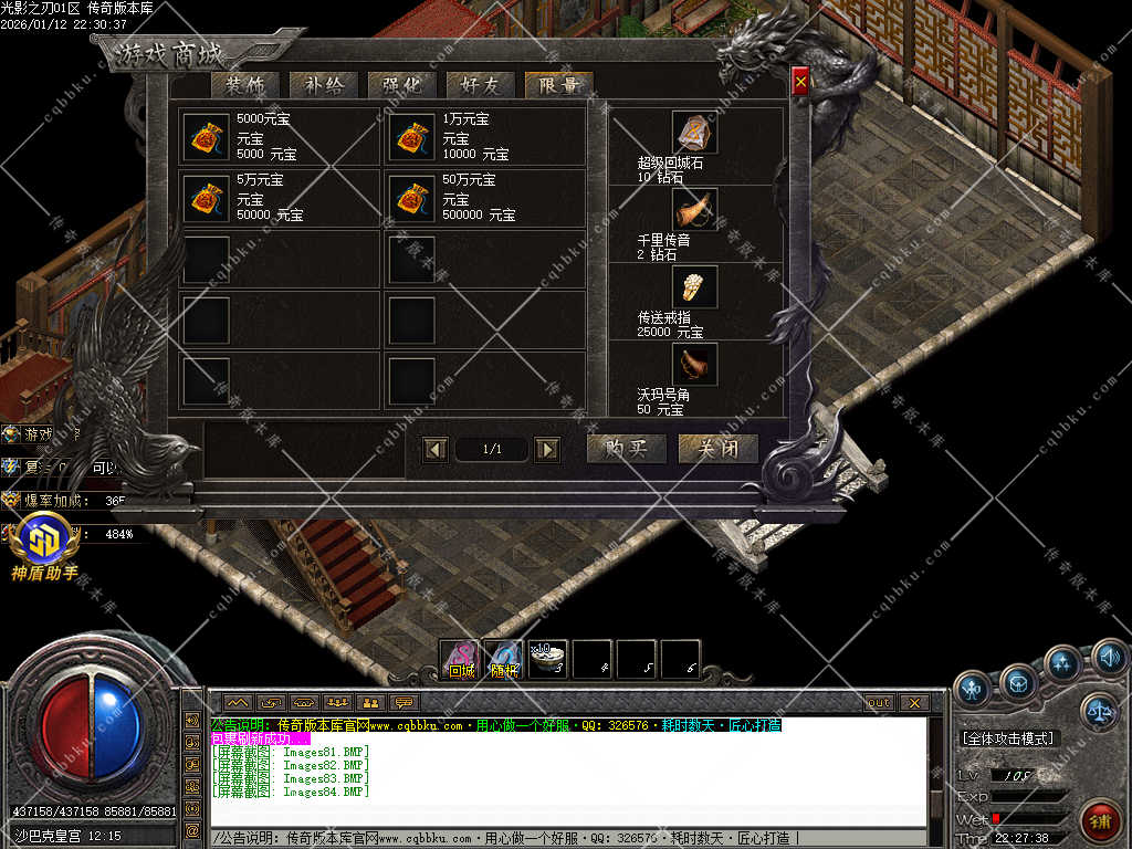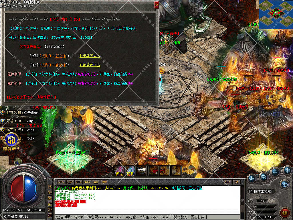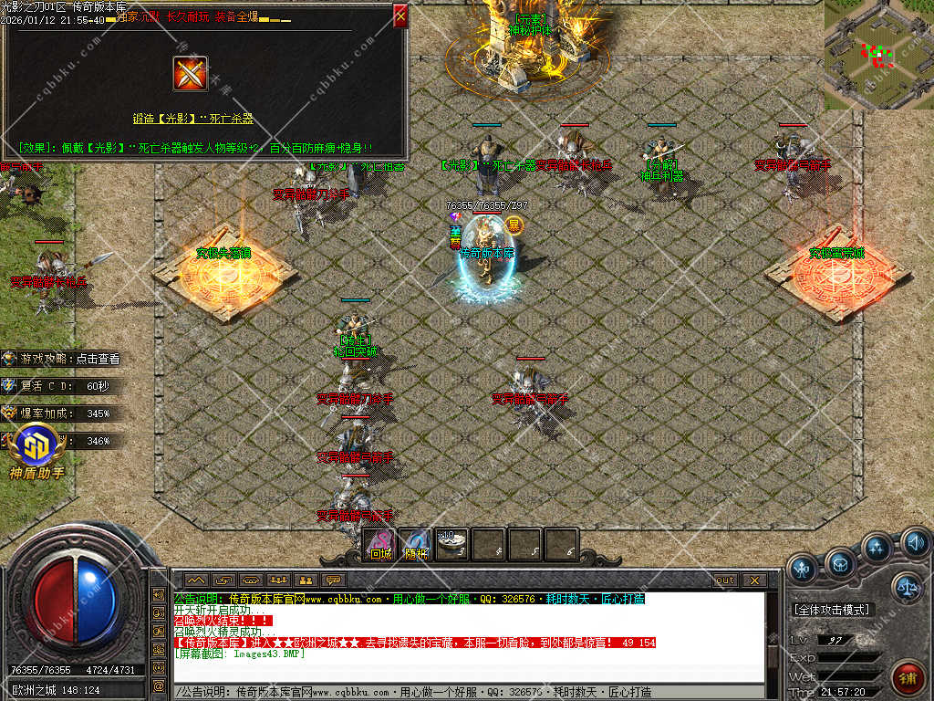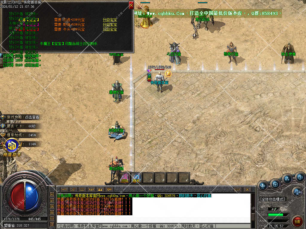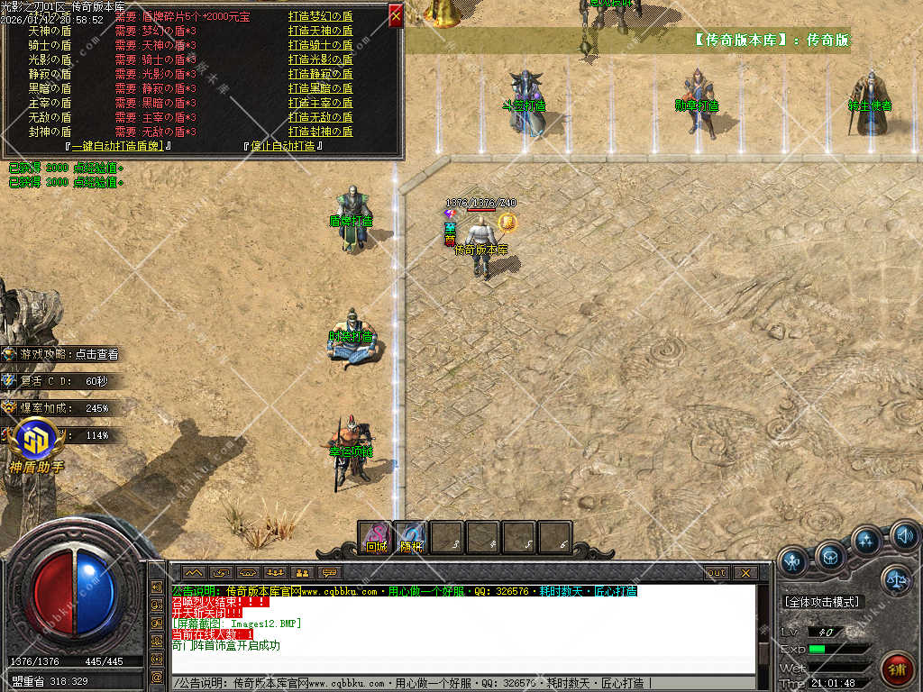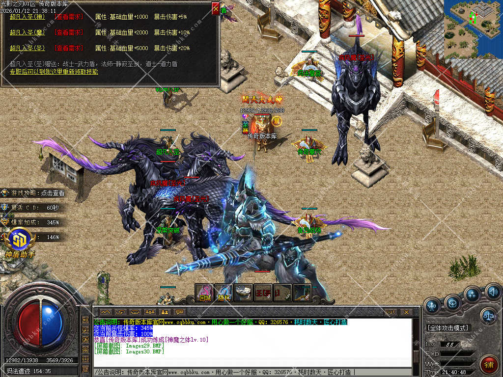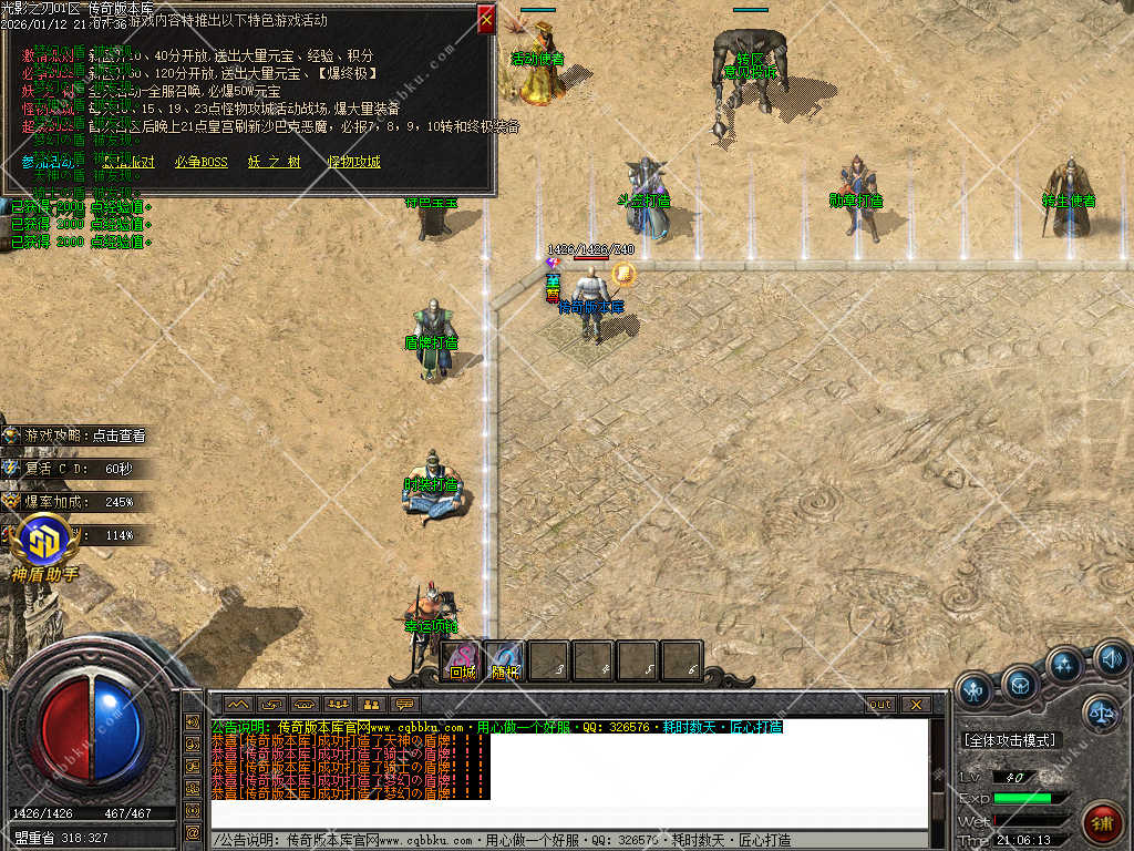 9.攻城系统:开区第三天,系统自动申请集体攻城,首届沙巴克奖励为:500万元宝+1.2倍攻击