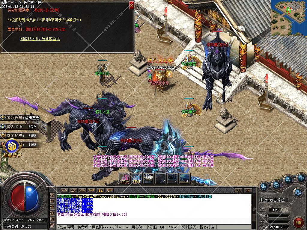 3.大神消费:充值280元,合成牛魔王【宝宝】(100万元宝)+ 冰雪连环珠(勋)(180万元宝)→杀怪经验和吃经验卷+100%(瞬间起飞)