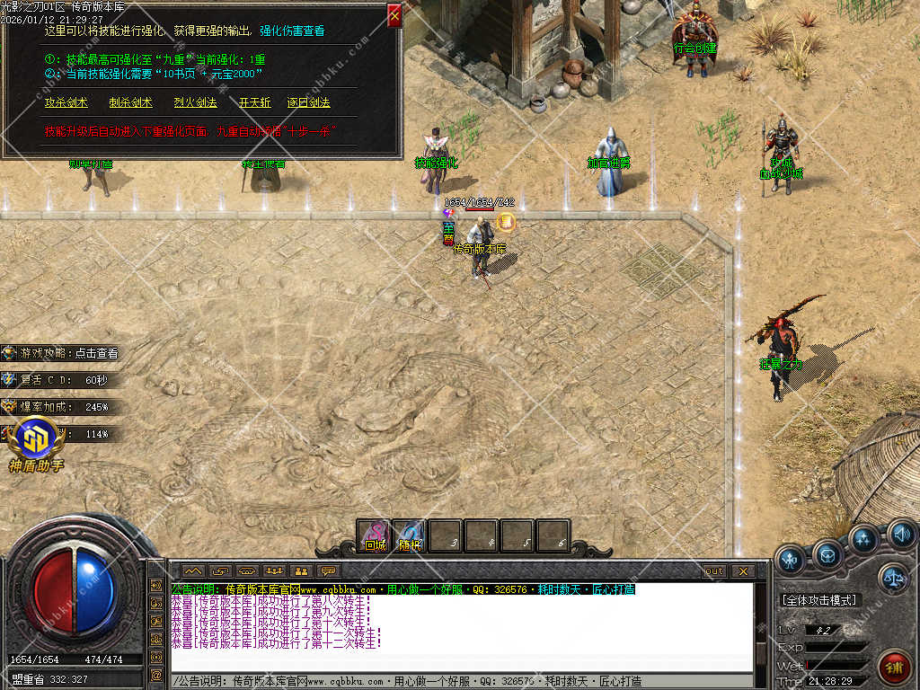4.战士介绍:技能强化处,自行查看,便可了解如何强化自身。战士前期不是很好打宝,建议先慢慢发育起来,再去大杀四方!