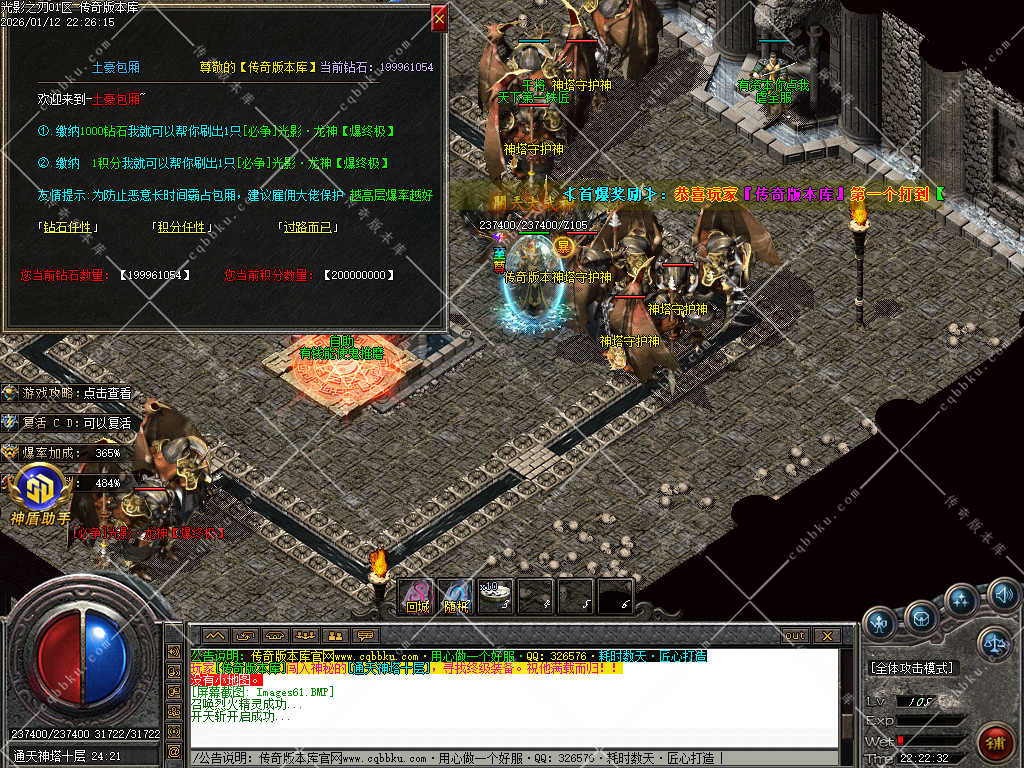 10.装备爆率:本服为了防止其他服的GM盗取爆率详细,暂不公开爆率表,不过本服郑重承诺,装备全部靠打,BOSS爆一切!!