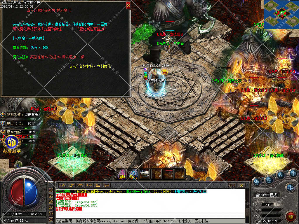 5.法师介绍:本服很多烧怪地图,如果有一起玩的,建议找个法师带你升级,本服地图多,BOSS多,刷元宝的速度很快。具体玩法相信你已经懂得了。
