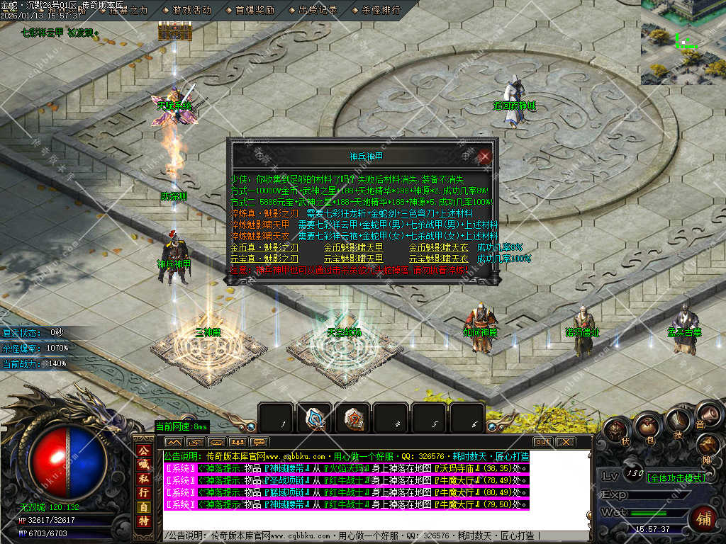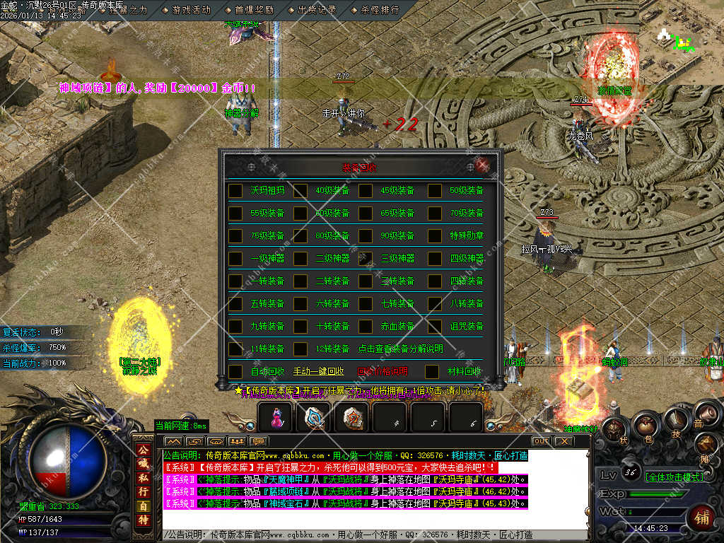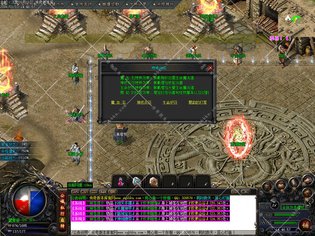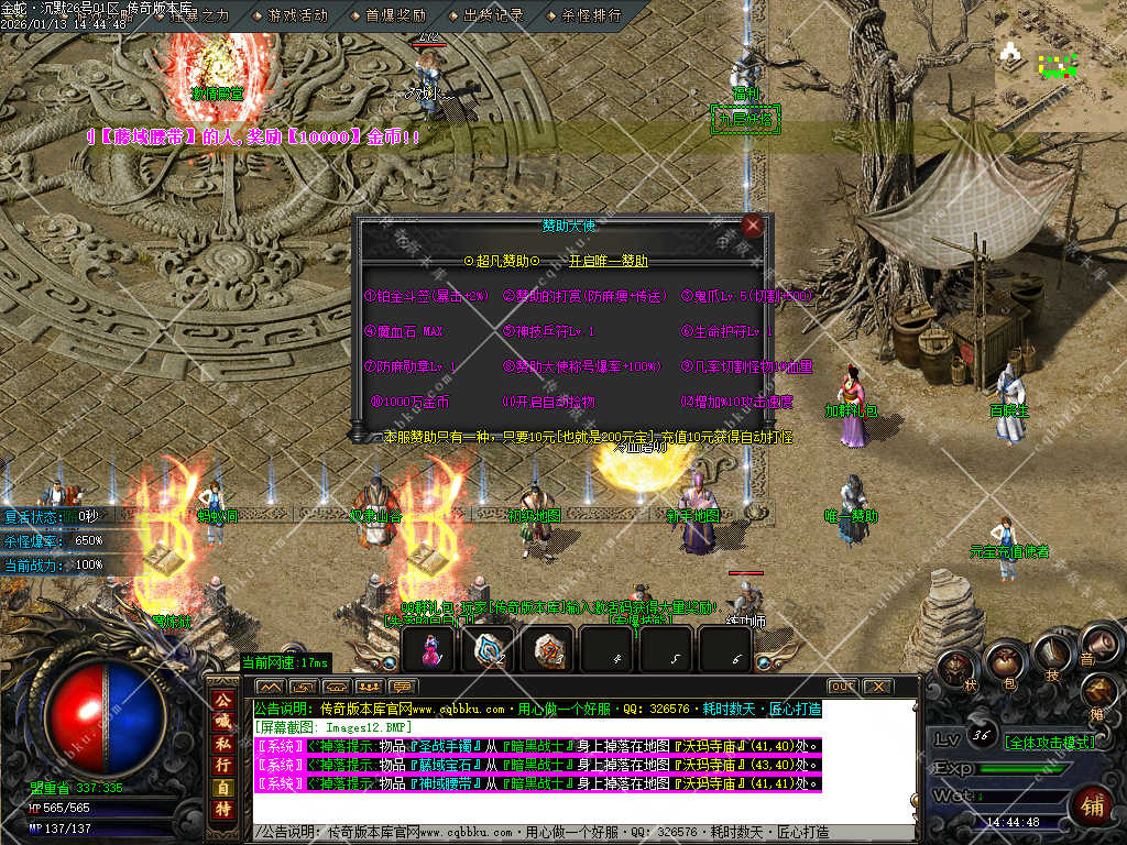 赞助打赏附带爆率<土豪直接购买合成,散人打装备回收元宝合成