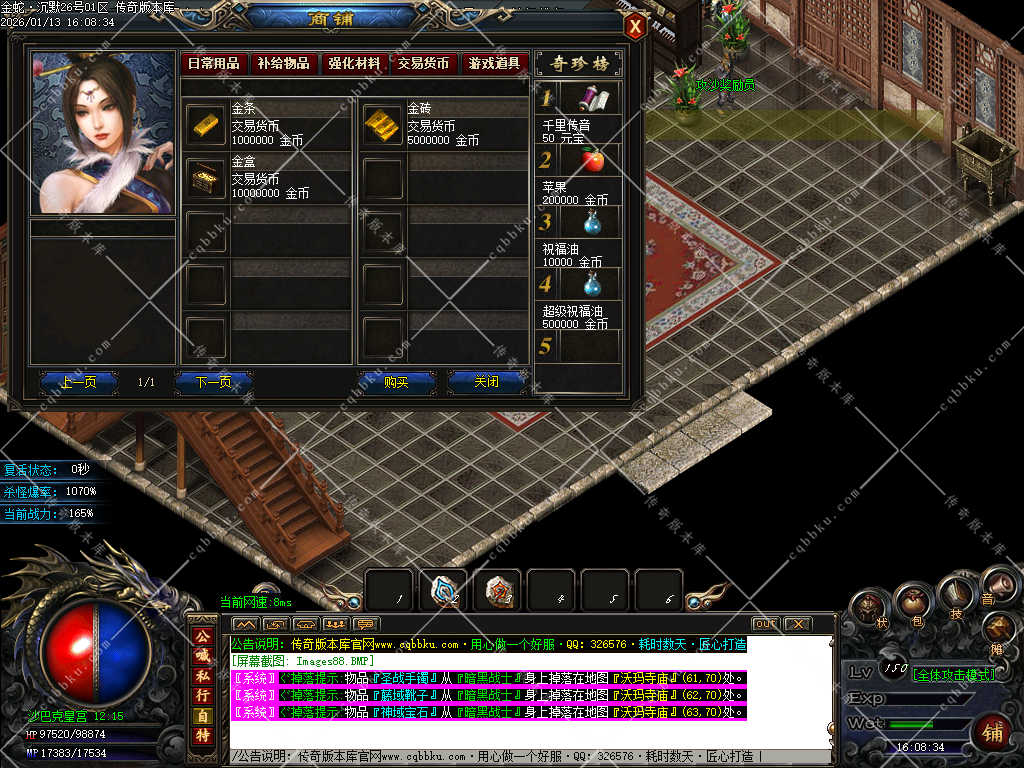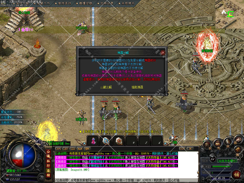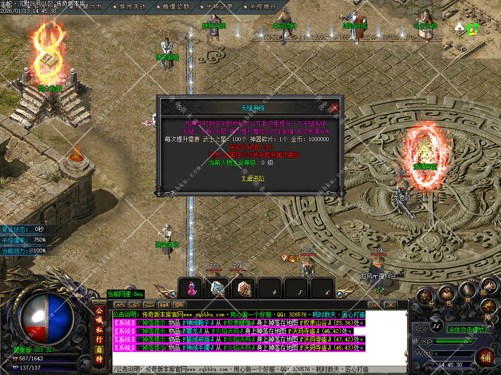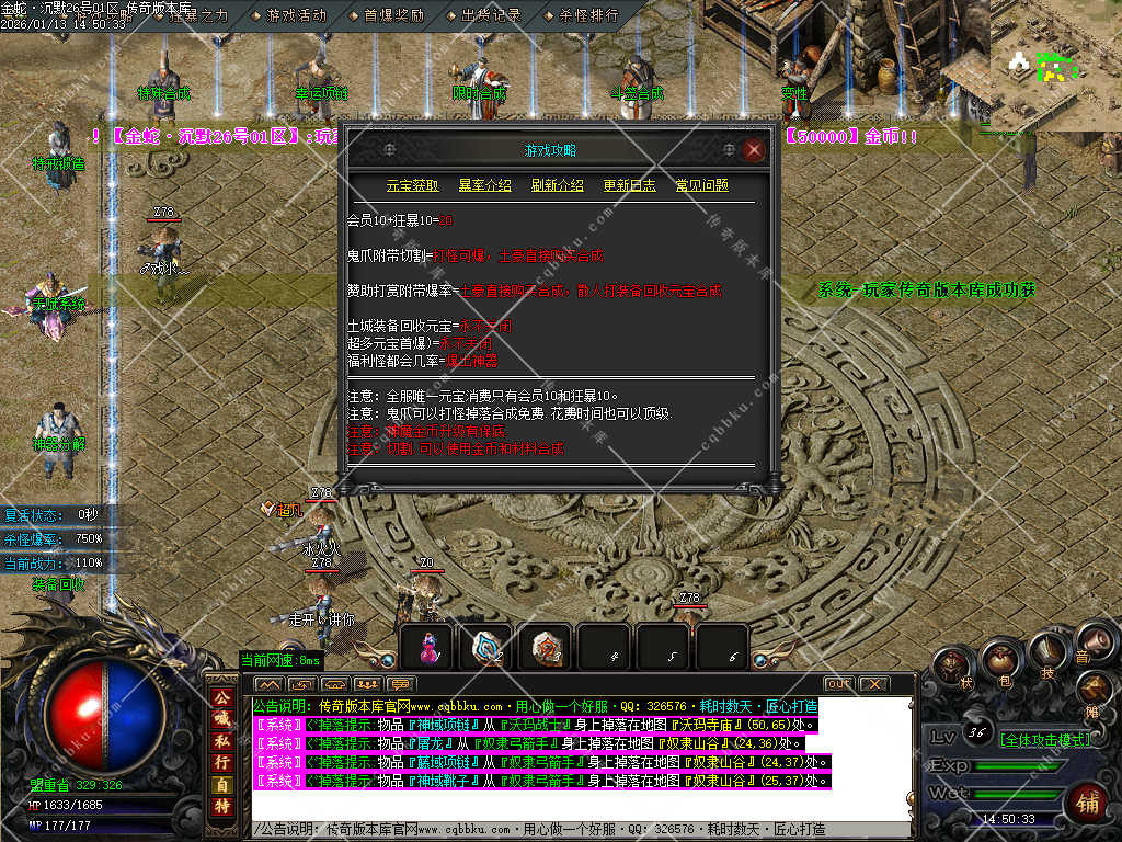 赞助打赏附带爆率<土豪直接购买合成,散人打装备回收元宝合成