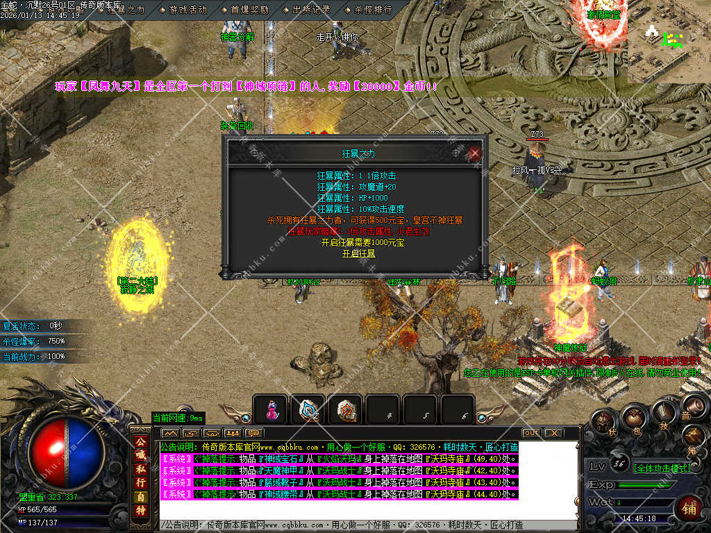 注意:本服唯一消费就是元宝,首爆,永久回收,都可以获得,充值是为了维护服务器基本开销。