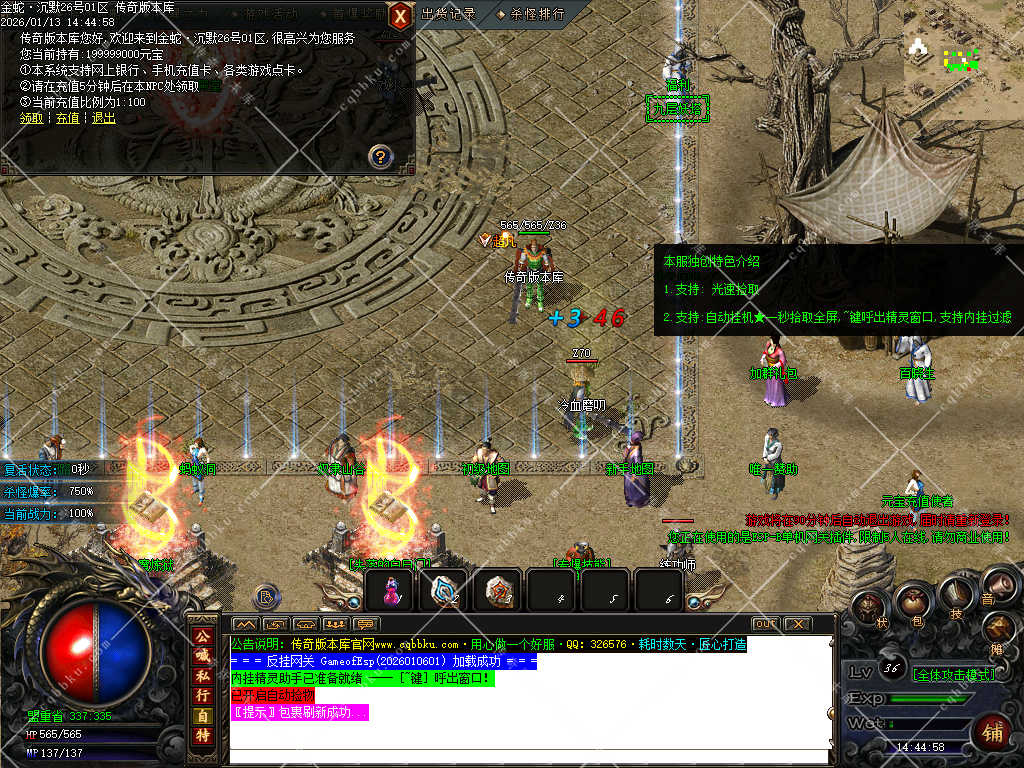 传奇版本库,传奇版本下载,传奇单机资源站,热门传奇版本库,热门传奇私服版本推荐-最全最新游戏版本下载基地 » 01-982独家金蛇沉默专属神器公益单职业服务端-智能假人-ESP插件-自动回收-五大陆