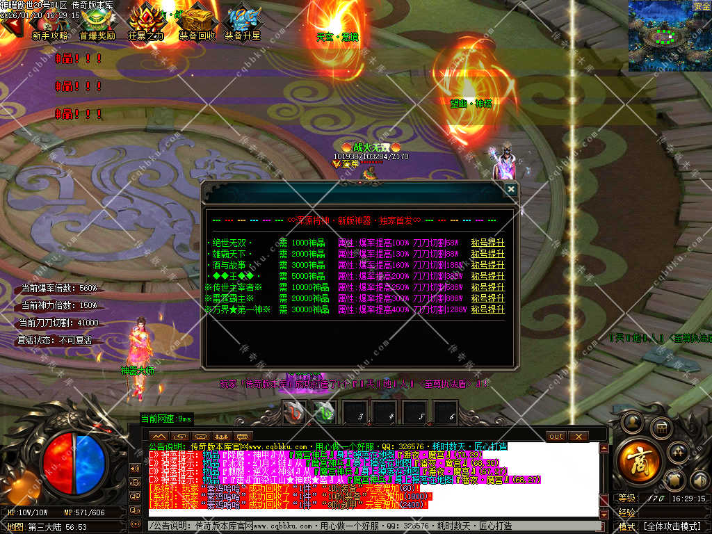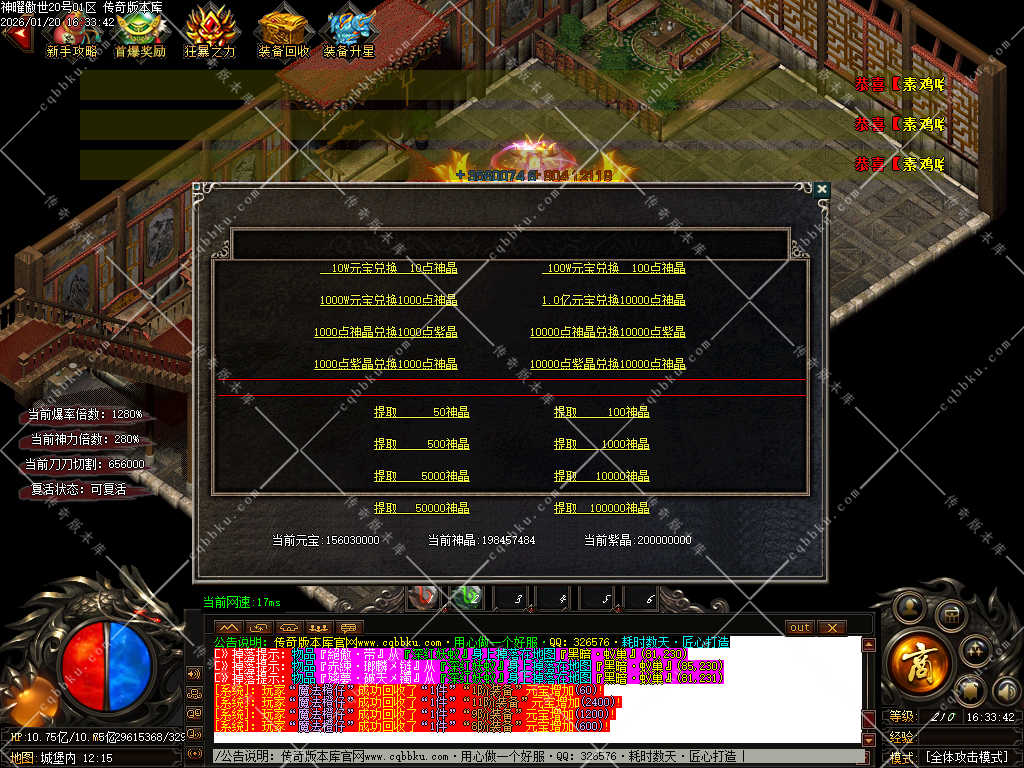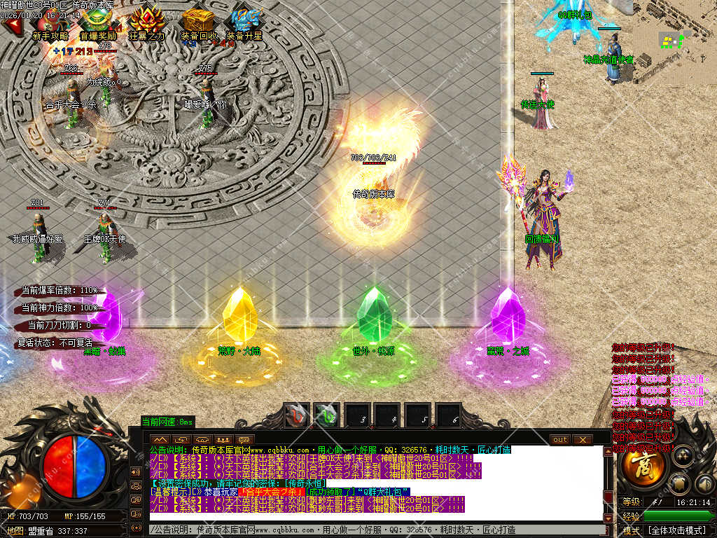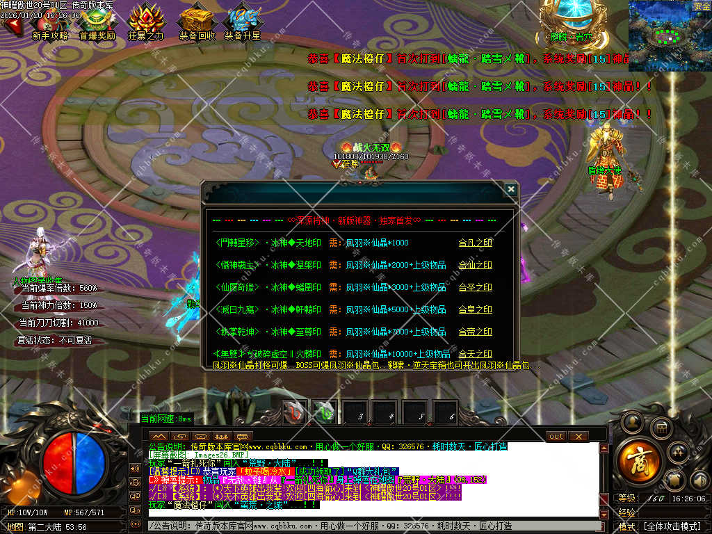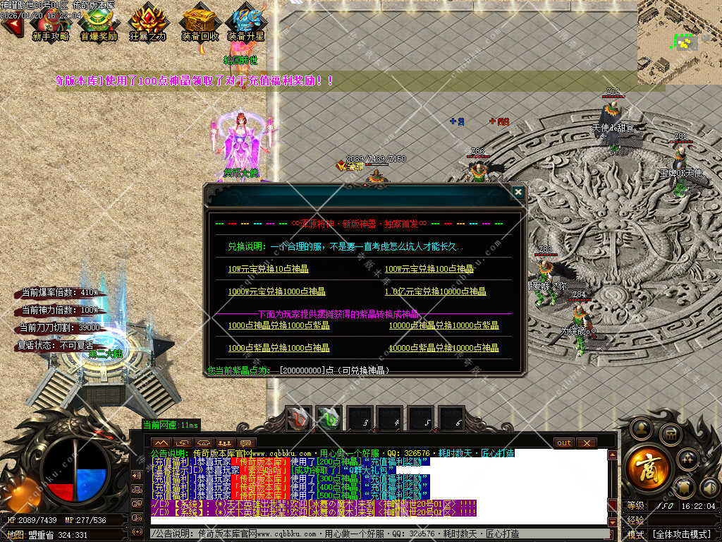 温馨提示:玩家可以打元宝兑换神晶,一大陆的回馈可以提升爆率