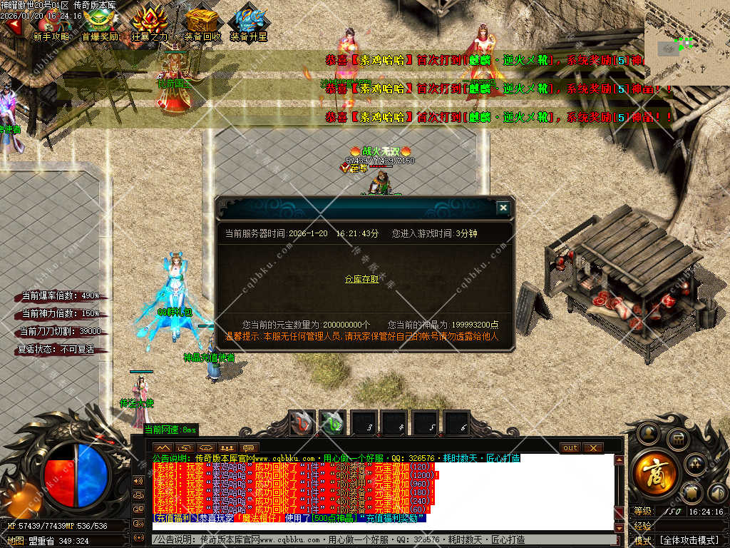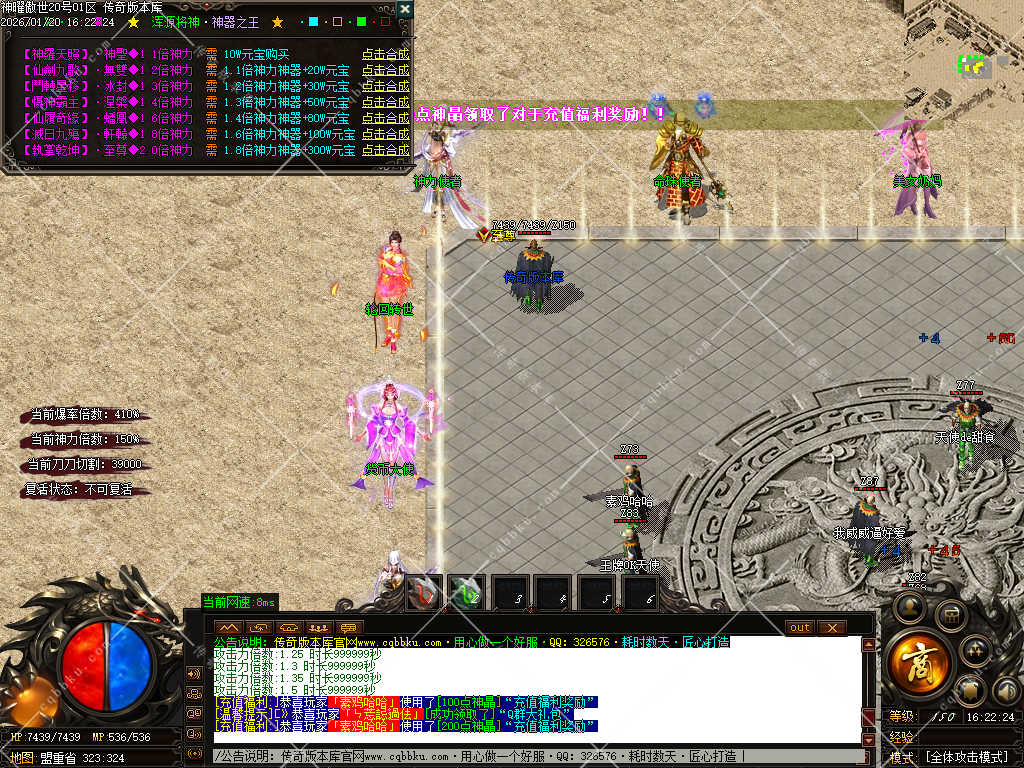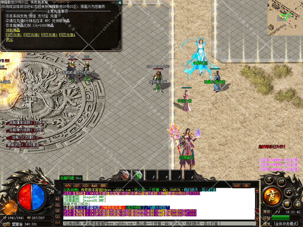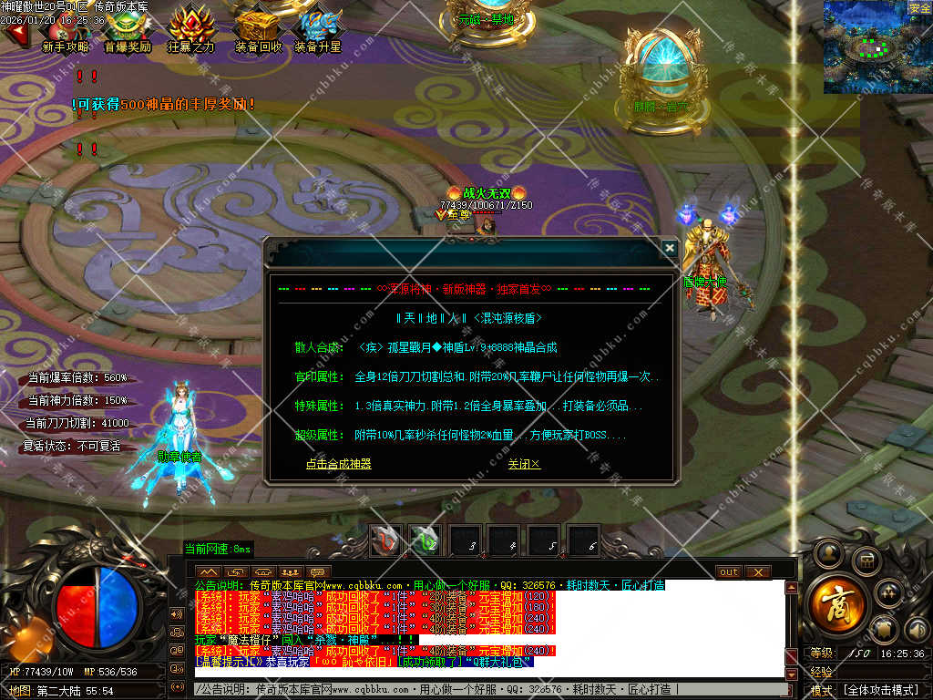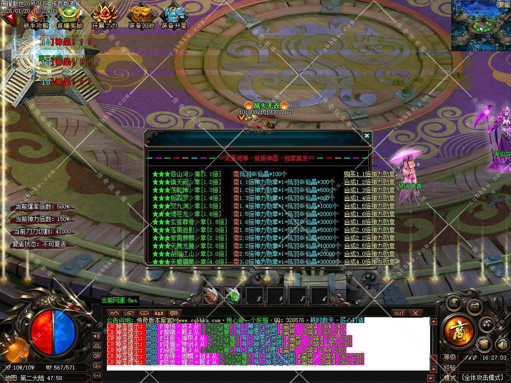 温馨提示:玩家可以打元宝兑换神晶,一大陆的回馈可以提升爆率