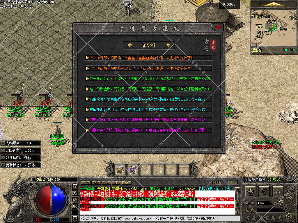 传奇版本库,传奇版本下载,传奇单机资源站,热门传奇版本库,热门传奇私服版本推荐-最全最新游戏版本下载基地 » 01-996独家古迹复古迷失正版激情金币单职业传奇版本-智能假人-自动回收-三大陆