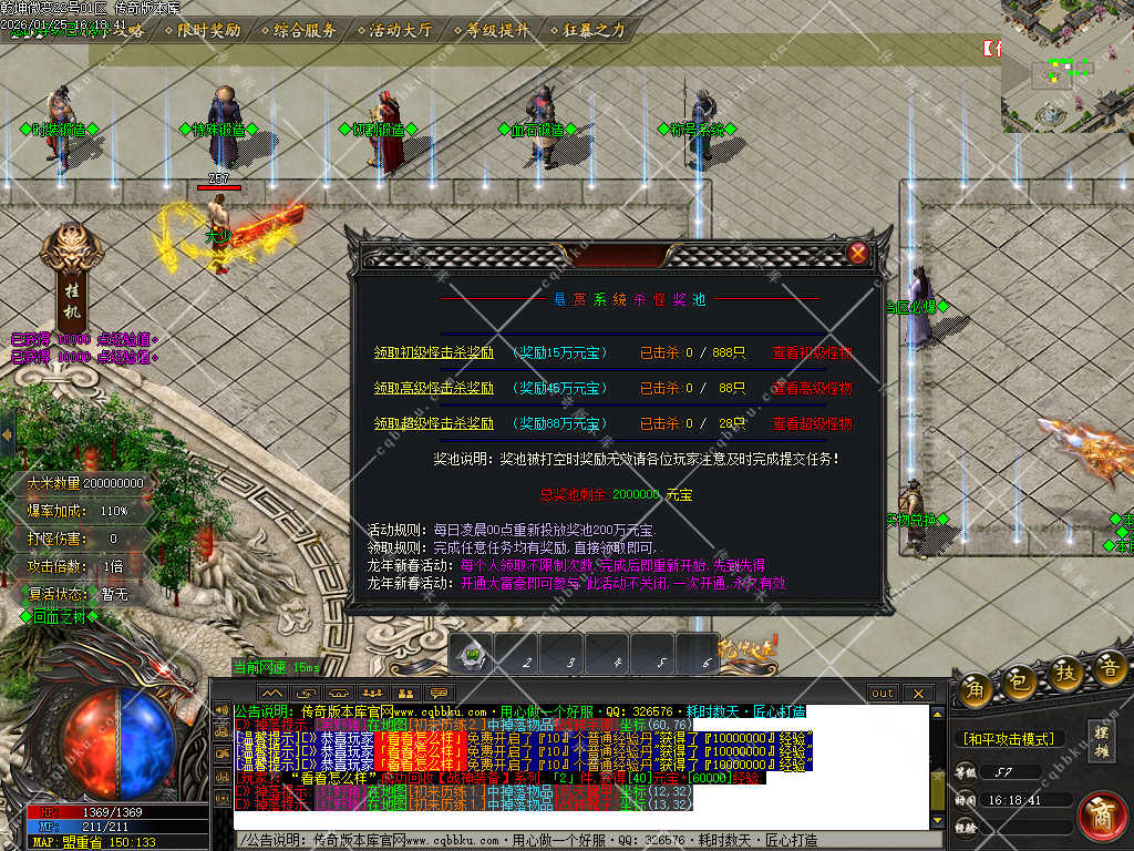 【爆率介绍】: 任何BOSS怪都出终极,全服BOSS怪见到不要放过,血少一样出终极散人多多打怪一定可以逆袭!