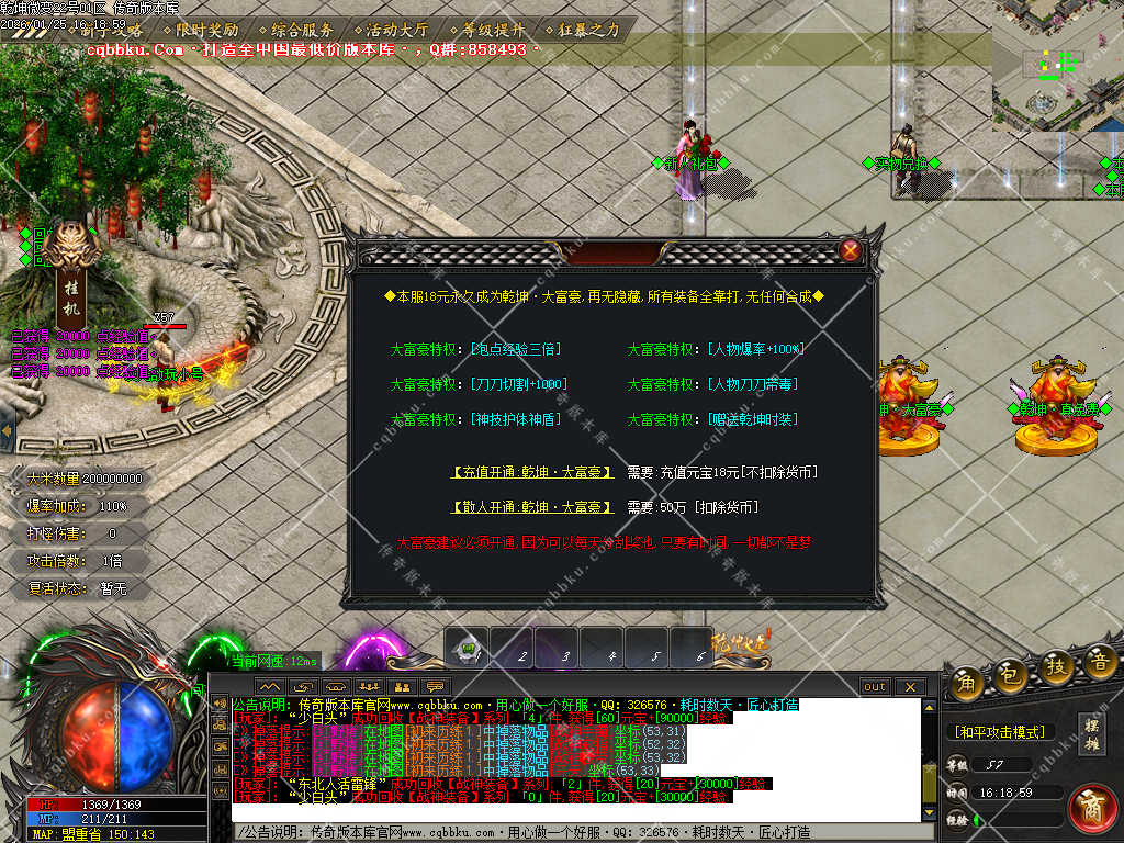兑换QQ群礼包去:无限扣打发育打元宝开通大富豪,沙捐和狂暴,就可以开始白嫖之路了!材料.元宝都可以卖给老板!