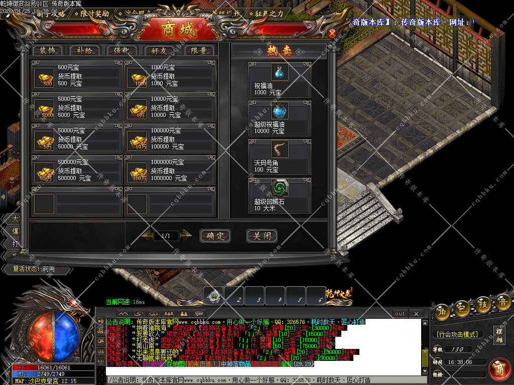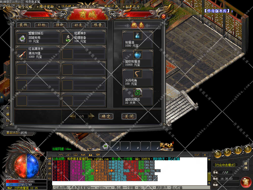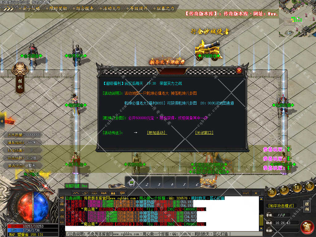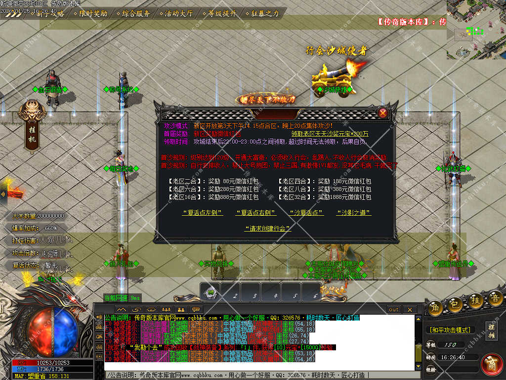 【攻城介绍】: 所有当天新区第3天下午14-15点合区.晚上开启攻城.新区攻城装备多多,奖励多多。【参照土城右上角攻城捐献】