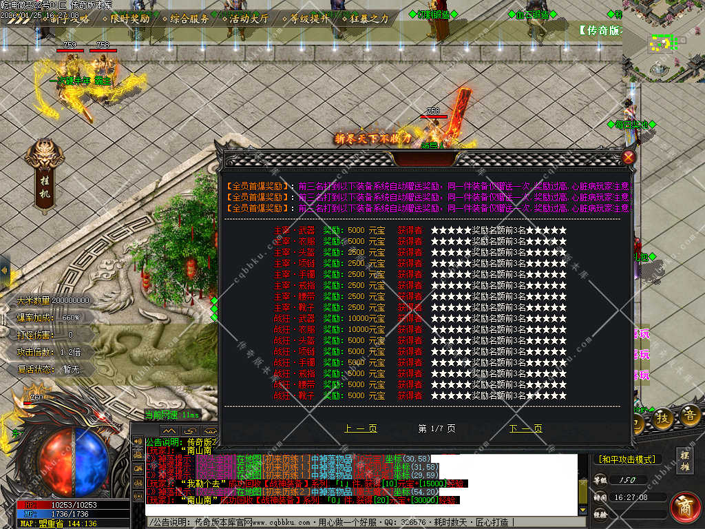 【游戏介绍】: 全服只卖一个赞助,首爆.首杀奖励高达500w的元宝,抢到就是赚到,屌丝一样揍土豪!