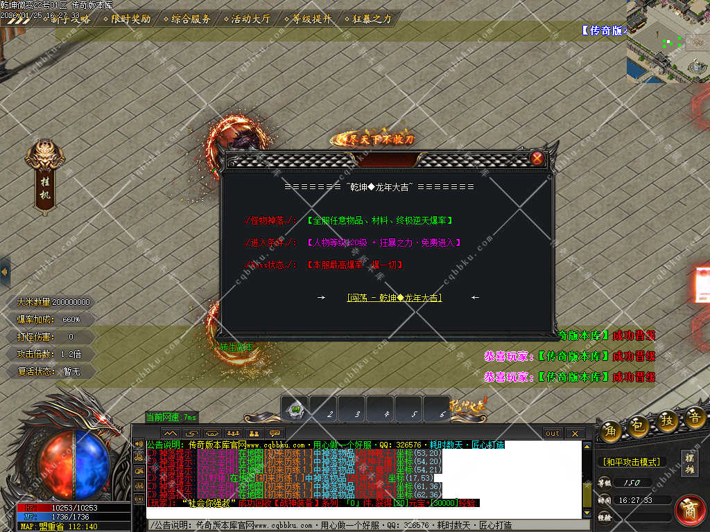 乾坤大富豪 + 开通狂暴.可以开启快人一步的发育之路!