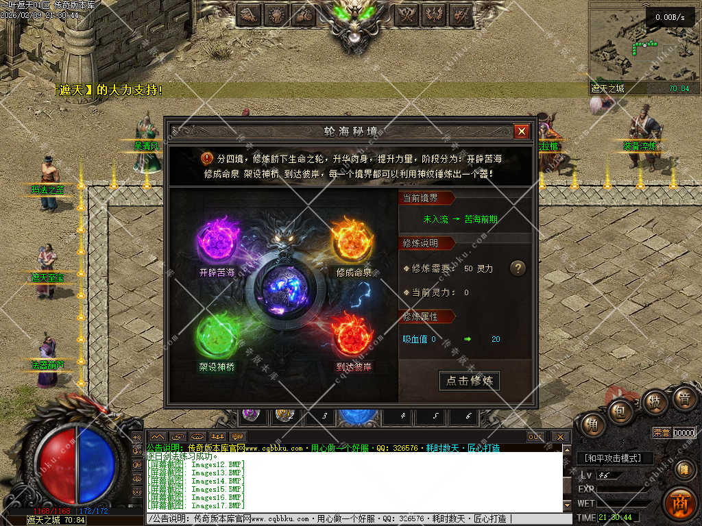 ⒉.轮海秘境∶每个大陆都有专属NPC,每日领取任务杀怪、提交材料获取对应奖励提升灵力解锁秘境之力,可获得强大属性
