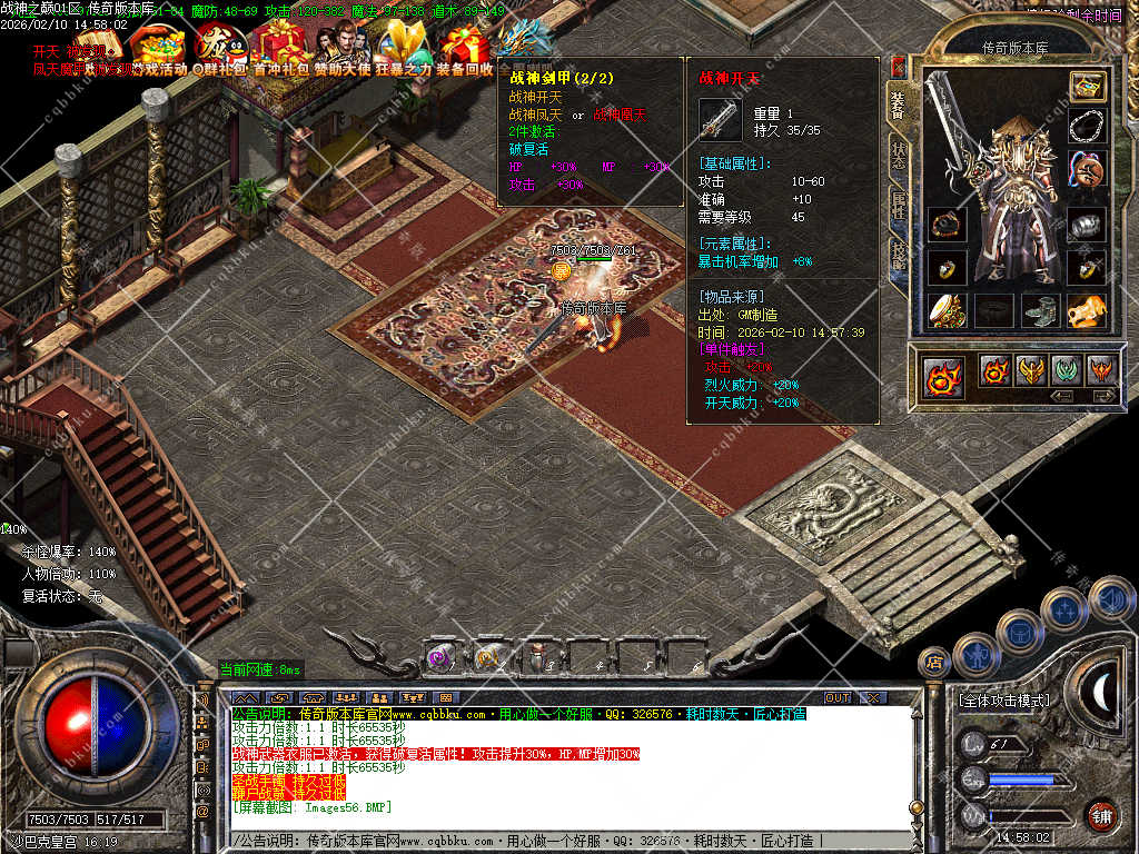 02-030独家1.80战神之巅小极品正版开区三职业传奇服务端-带光柱-魔神之路-背包神器